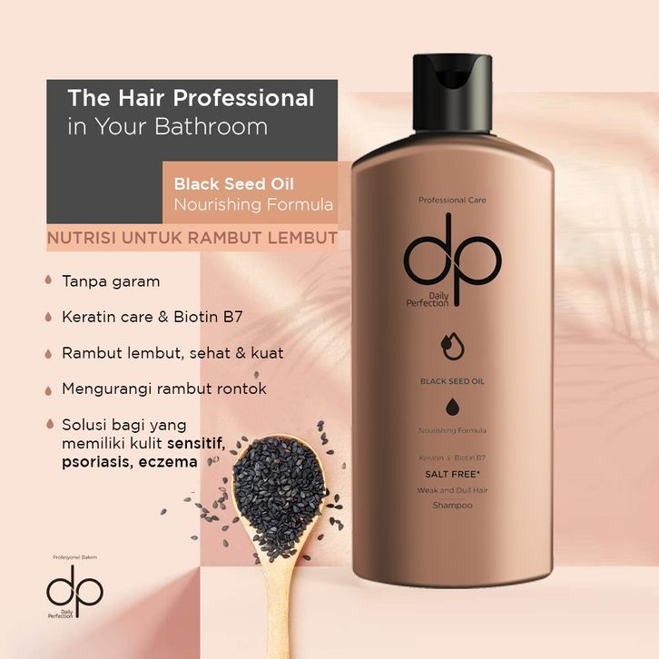 Shampo Anti Ketombe DP Daily Perfection Shampoo Habbatussauda Nourishing Formula 250 ml - Salt Free Shampo Bebas Garam S