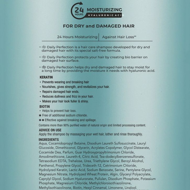 Shampo Anti Ketombe DP Daily Perfection BIO BARRIER Shampoo Moisturizing 500 ml - Salt Free Shampo SLS Free Hyalluronic