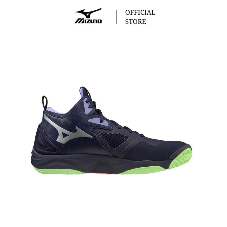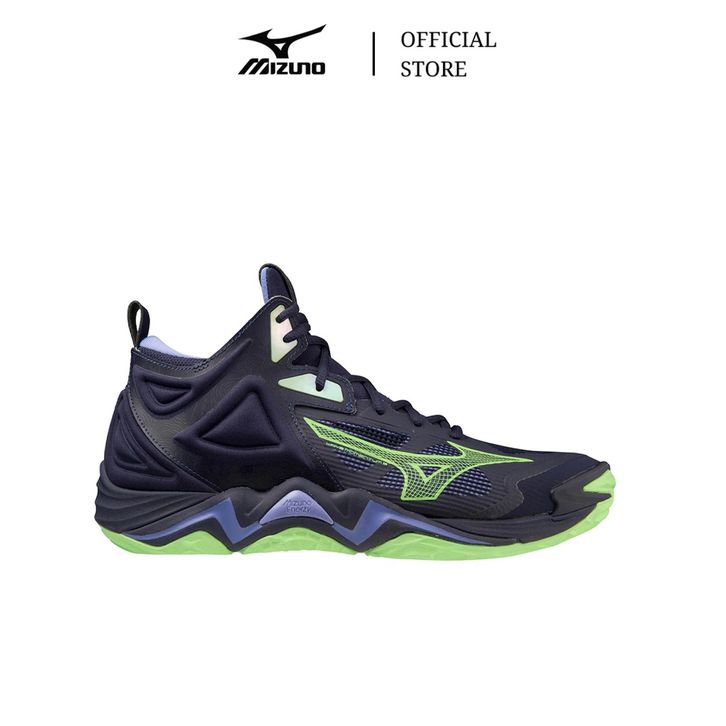 TERLARIS MIZUNO SEPATU VOLLEY WAVE MOMENTUM 3 MID EVENING BLUE TECHNO GREEN IOLITE MIZV1GA231711