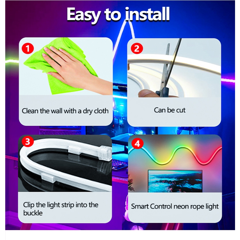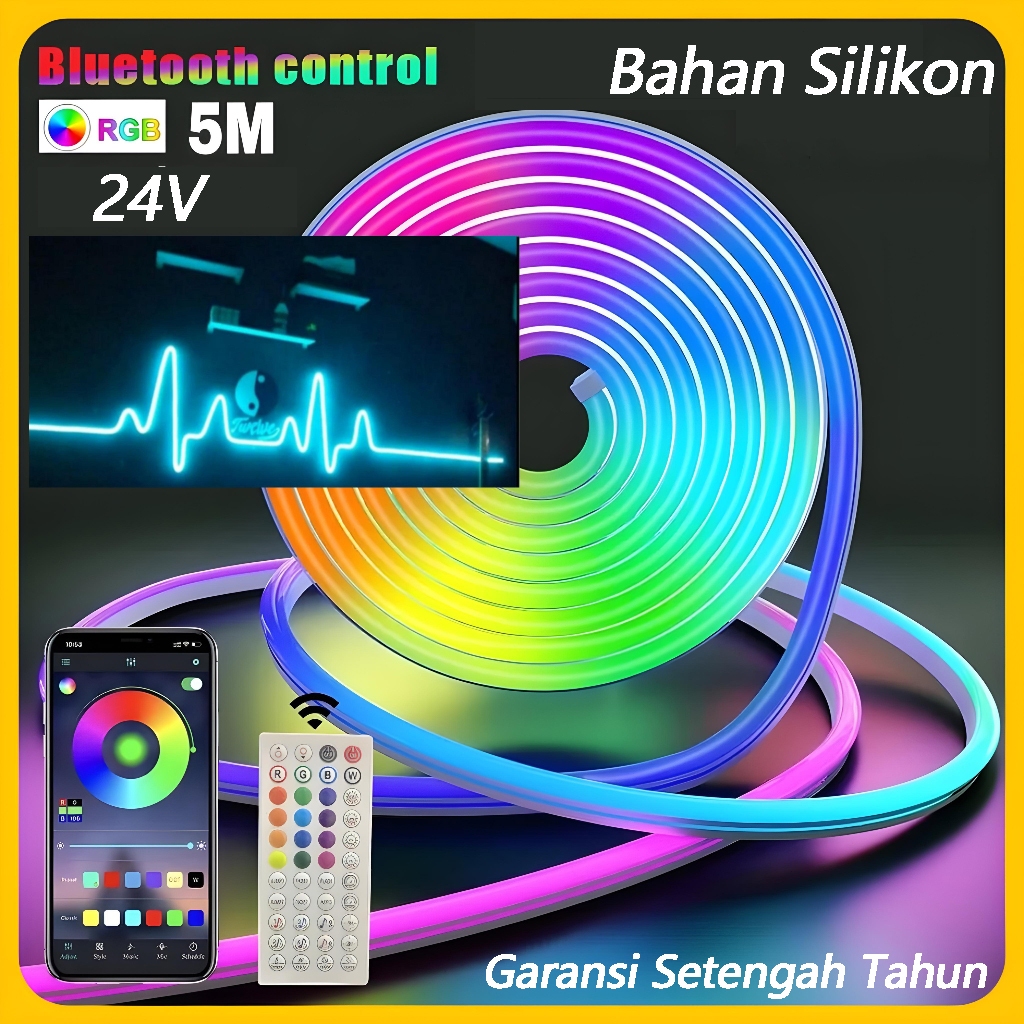 Lampu Neon Flex Running 5M Lampu Strip Led Neon Sign Dekorasi Kamar Silikon Lembut Fleksibel Tahan Air