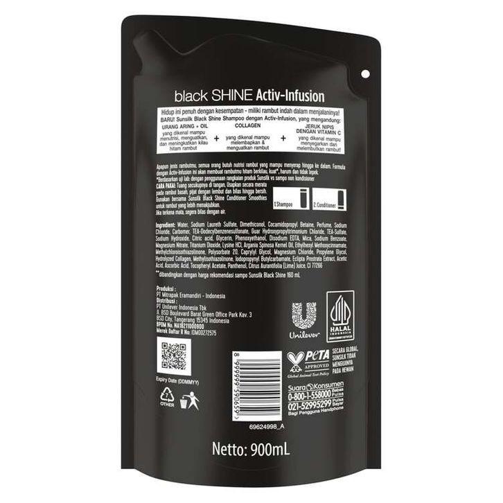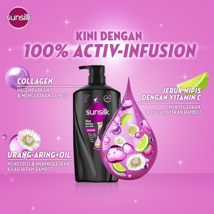 Sunsilk Shampoo Rambut Hitam Berkilau Black Shine Activ-Infusion dengan Urang Aring 900ml
