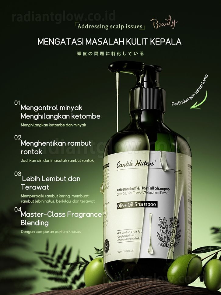 Cantik Hutan Shampoo Olive Oil Anti Ketombe & Rontok | Melembapkan Rambut Kering | Lembut & Tidak Menyebabkan Iritasi