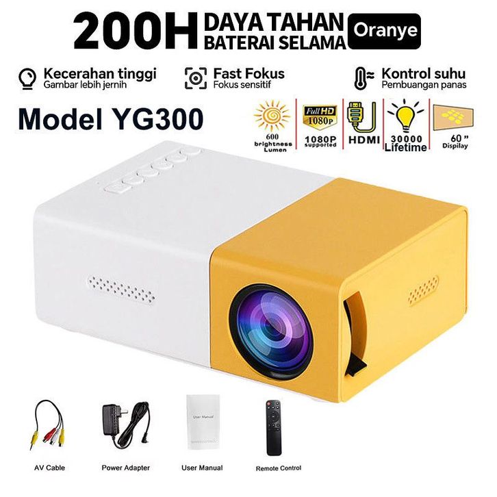 Proyektor Mini Portable Hp Android 4K Full HDMI YG300 Led Mini Proyektor TV Mini Home Theater Dukungan Mirroring Ponsel