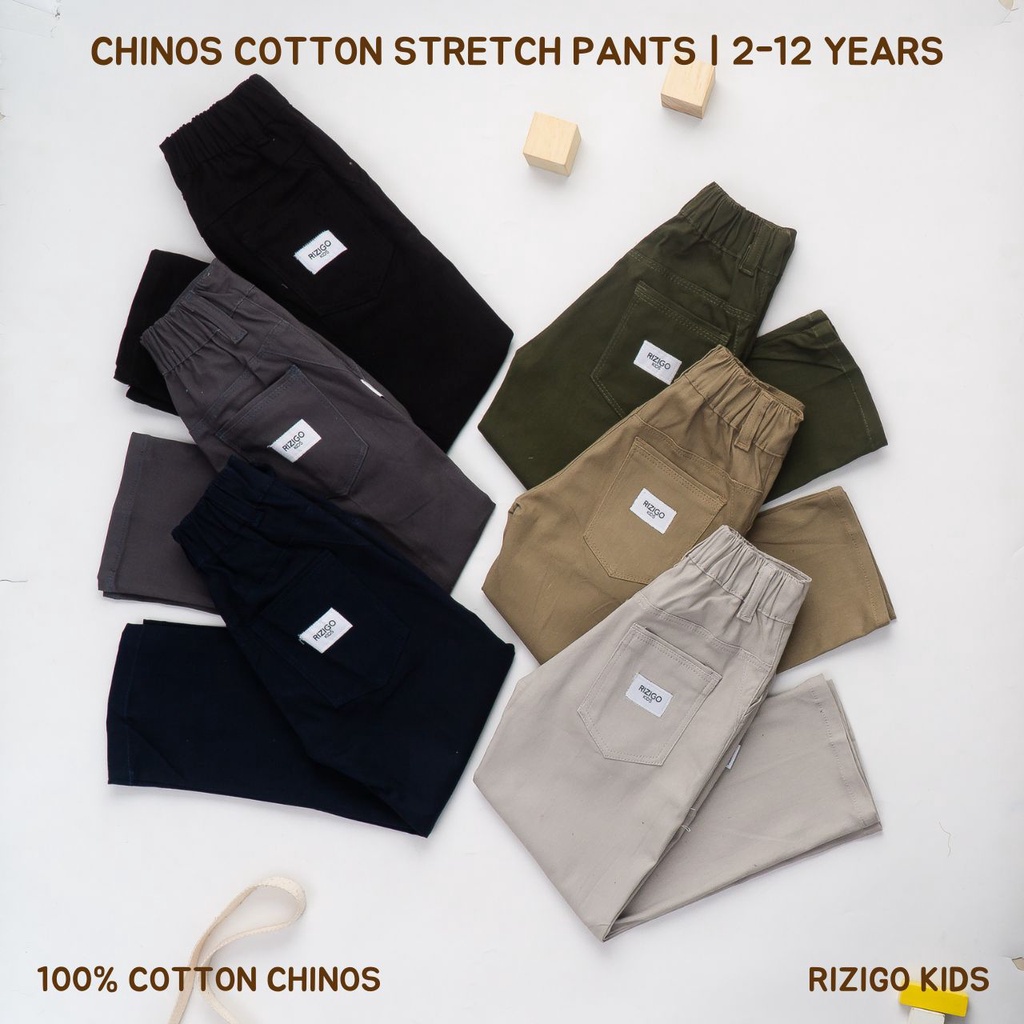 Rizigo Kids Celana Chinos Cotton Stretch Anak Laki Laki Perempuan 2-12 Tahun