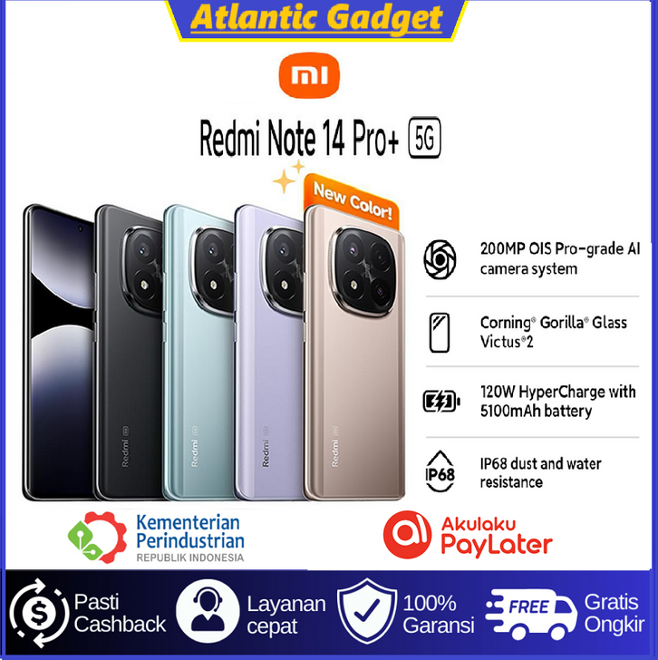 Hp Xiaomi Redmi Note 14 Pro+ 5G RAM 12/512GB | Snapdragon® 7s Gen 3 | 200MP OIS AI Kamera | IP68 Tahan Air & Debu | NFC