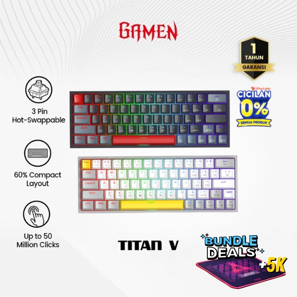 GAMEN Titan 5 Keyboard Gaming Mechanical 60 PERSEN Layout RGB Light Hot-Swappable Full Key Anti-Ghosting Original - Garansi 1 Tahun