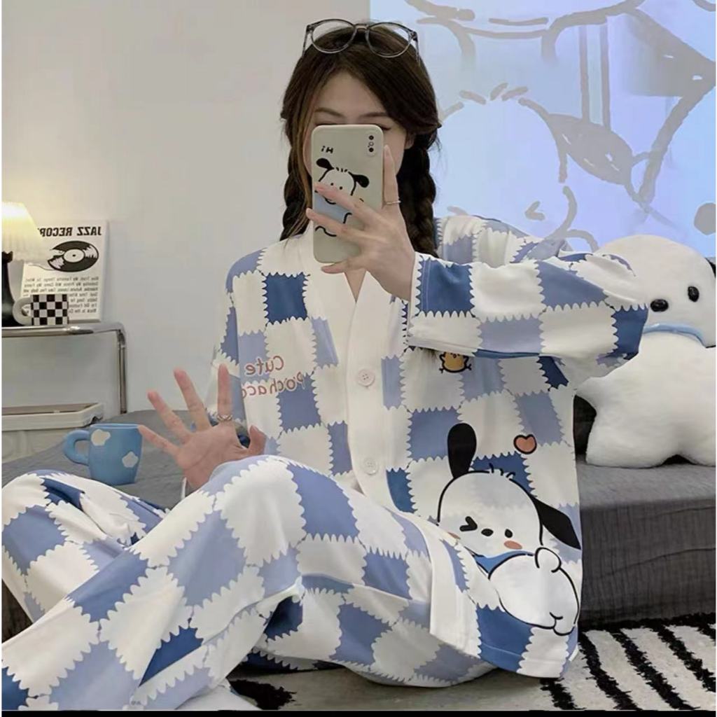KINIE PIYAMA WANITA MOTIF HANAMI BAJU TIDUR WANITA DEWASA SET KEMEJA LENGAN PANJANG CELANA PANJANG