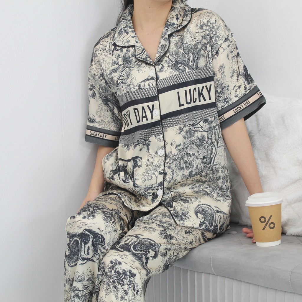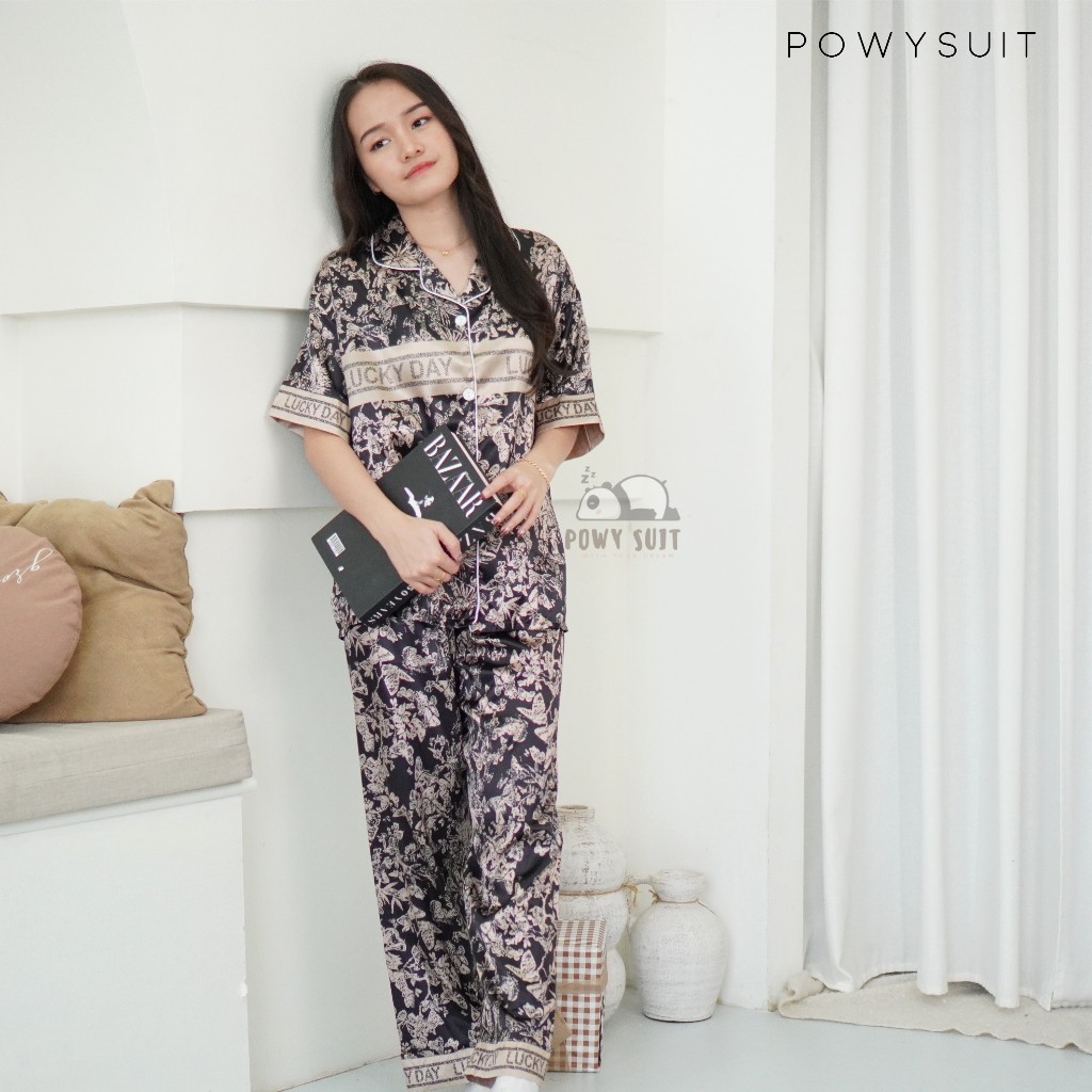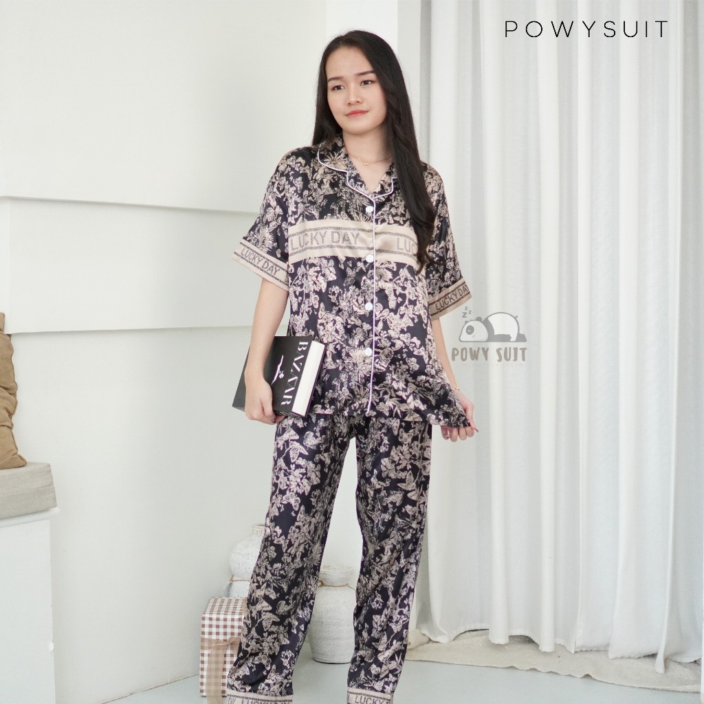 ST41 LUCKY DAY PIYAMA SATIN POWYSUIT BAJU TIDUR WANITA SETELAN LENGAN PENDEK CELANA PANJANG LEMBUT