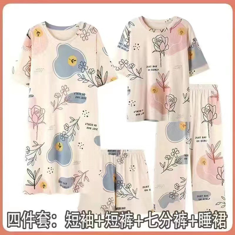 MURHOL 4IN1 BAJU TIDUR SET DASTER CELANA PENDEK CELANA 3/4 CELANA PANJANG WANITA SETELAN PIYAMA CEWE
