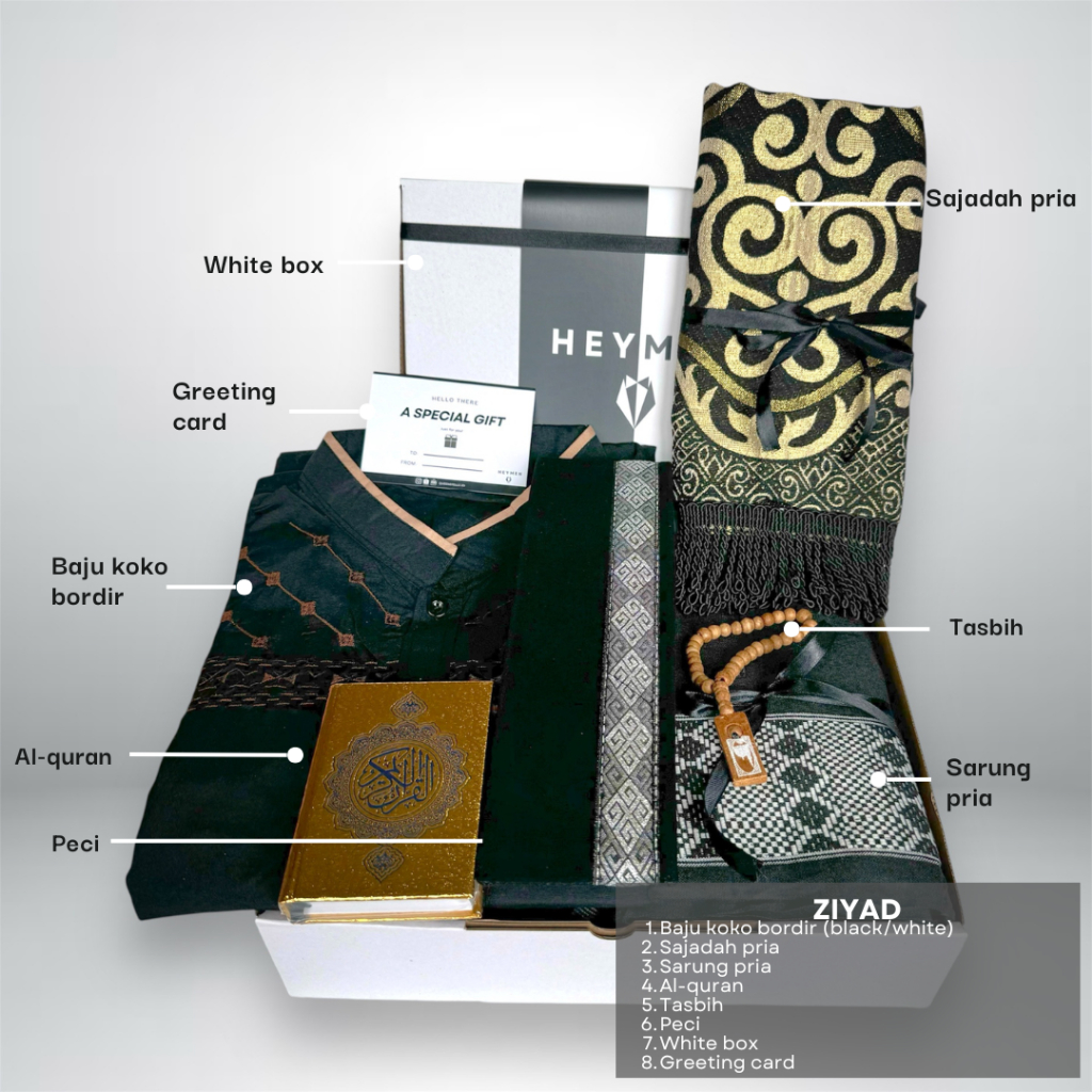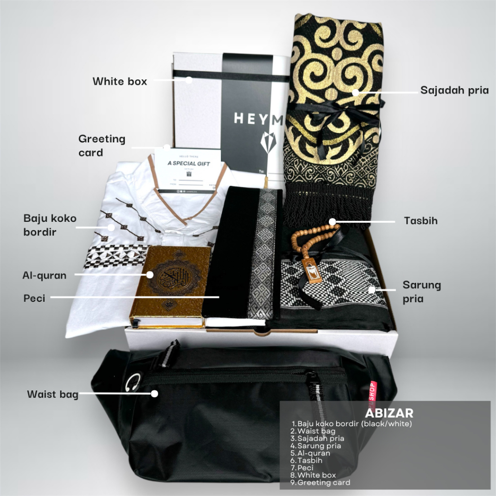 HAMPERS COWOK MUSLIM BAJU KOKO EXCLUSIVE SAJADAH SARUNG TASBIH HANDBAG PRIA ISLAM KADO COWOK ULANG LEBARAN TAHUN COWO KOKOH HEYMEN