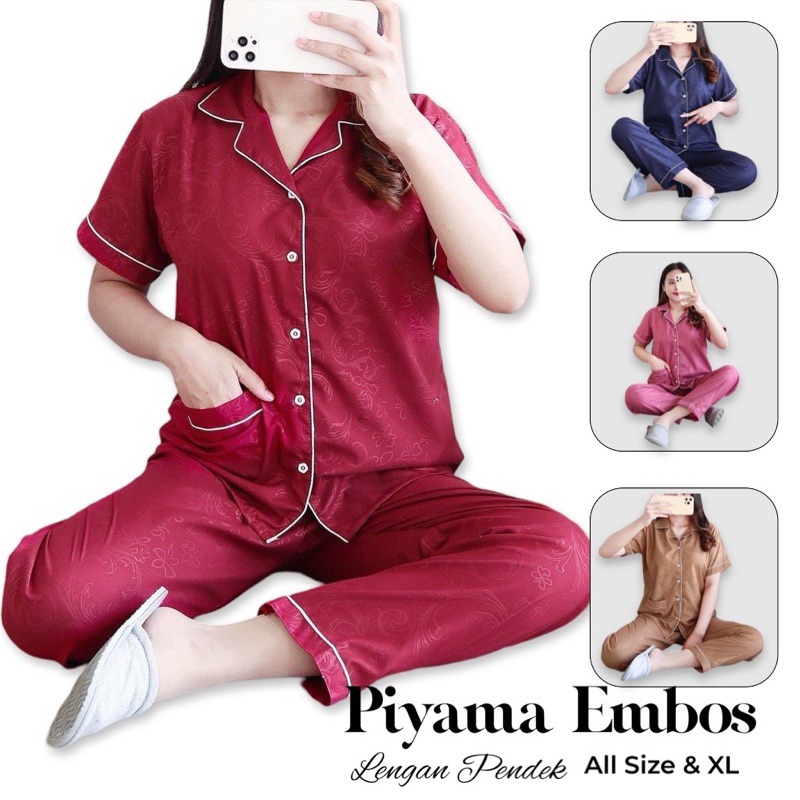 STELAN PIYAMA BAJU TIDUR WANITA LENGAN PENDEK CP EMBOS MOTIF PREMIUM LD 102 CM