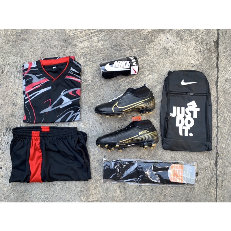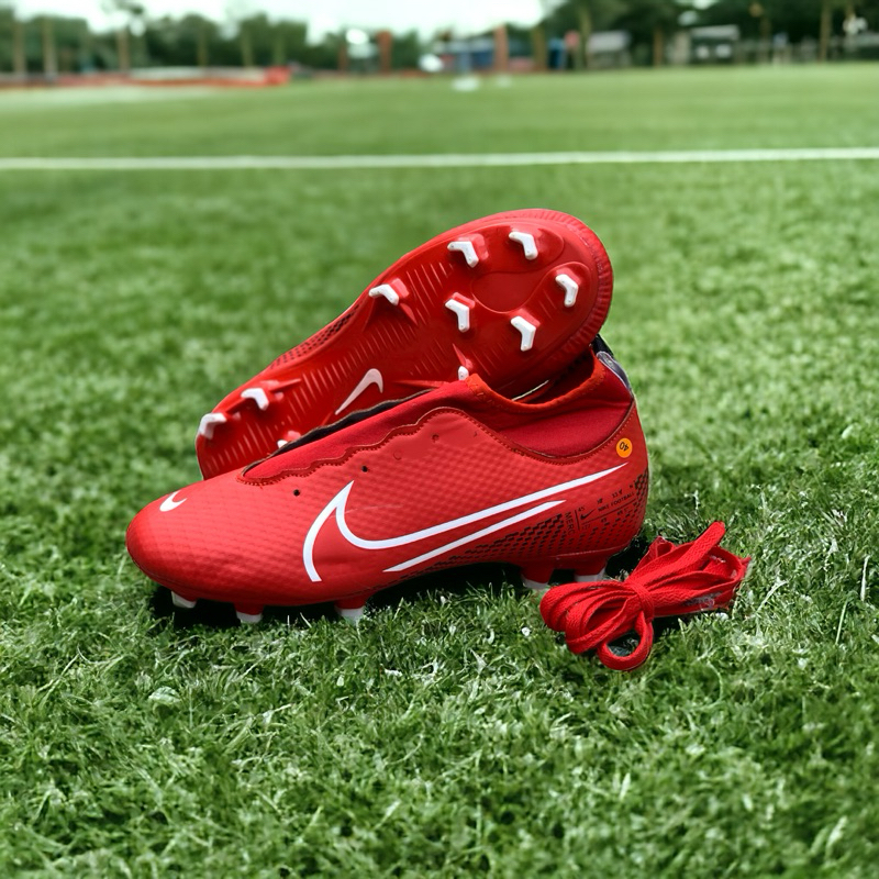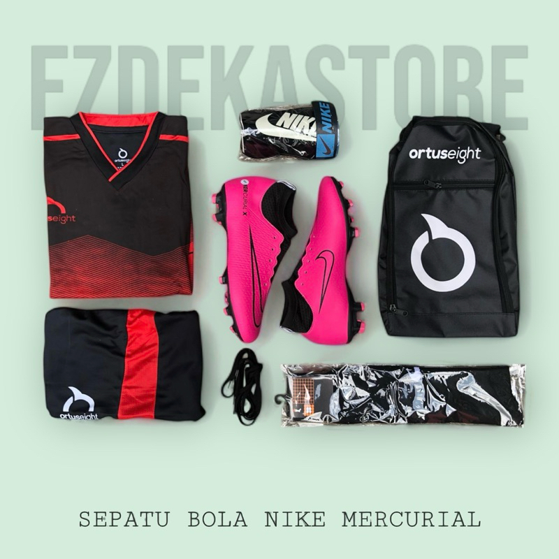 (PAKET KOMPLIT) SEPATU BOLA MERCURIAL CR7 BOOTS SUPERFLY ELITE ACC MURAH WARNA HITAM PINK POLOS
