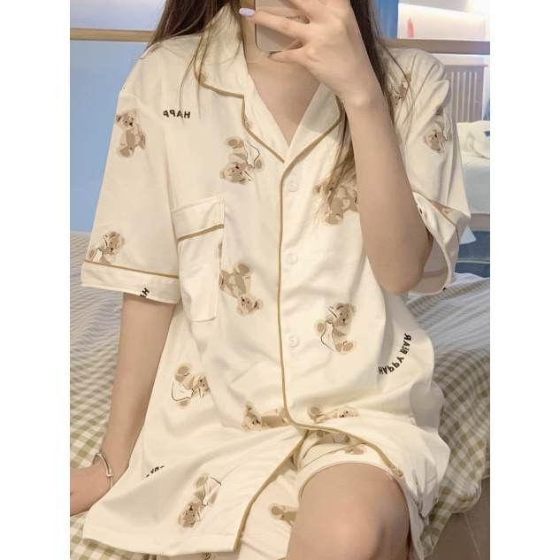 【TR】BT012 BAJU TIDUR SET WANITA DEWASA CELANA PENDEK PIYAMA KEMEJA IMPORT KOREA MOTIF PIAMA PAJAMAS