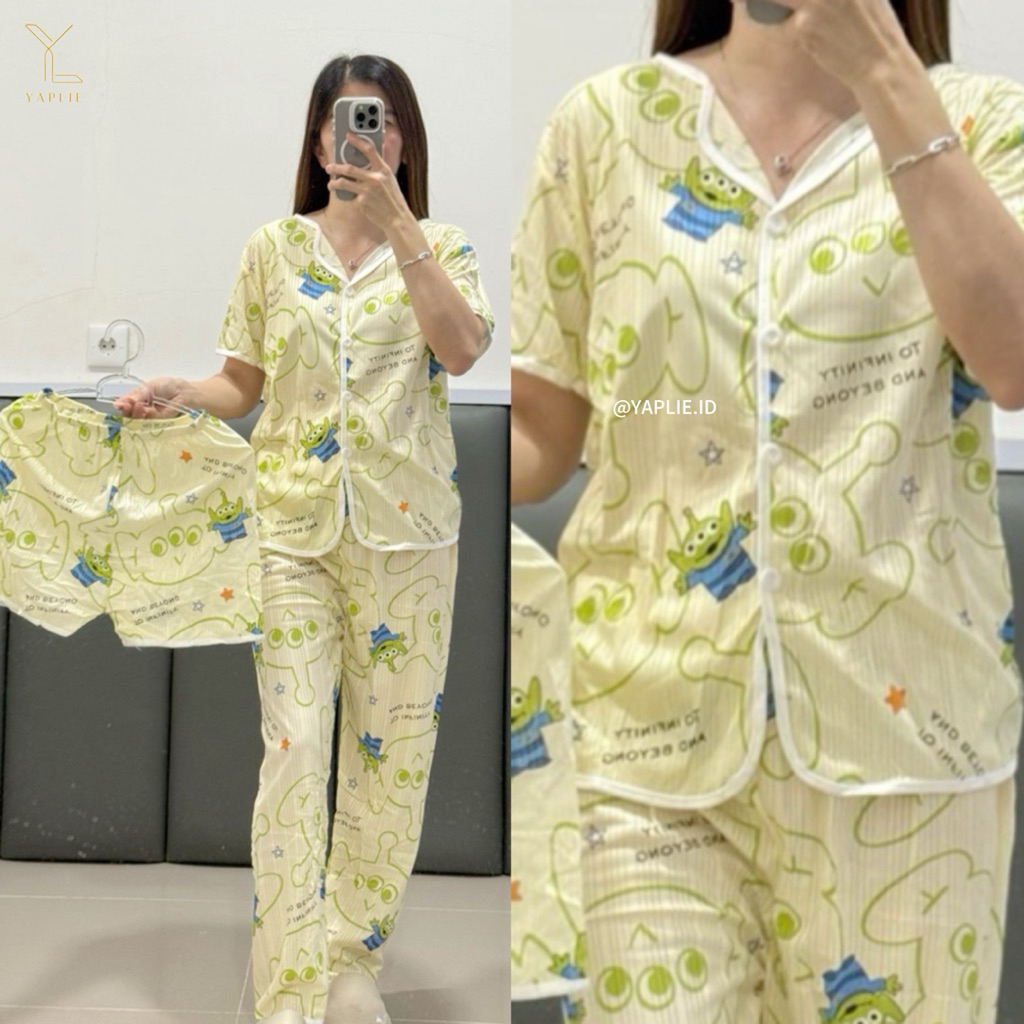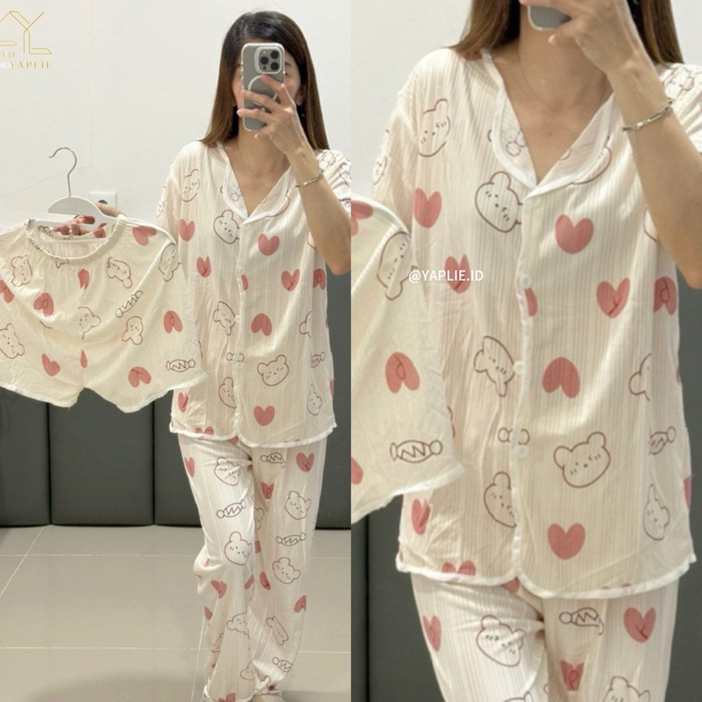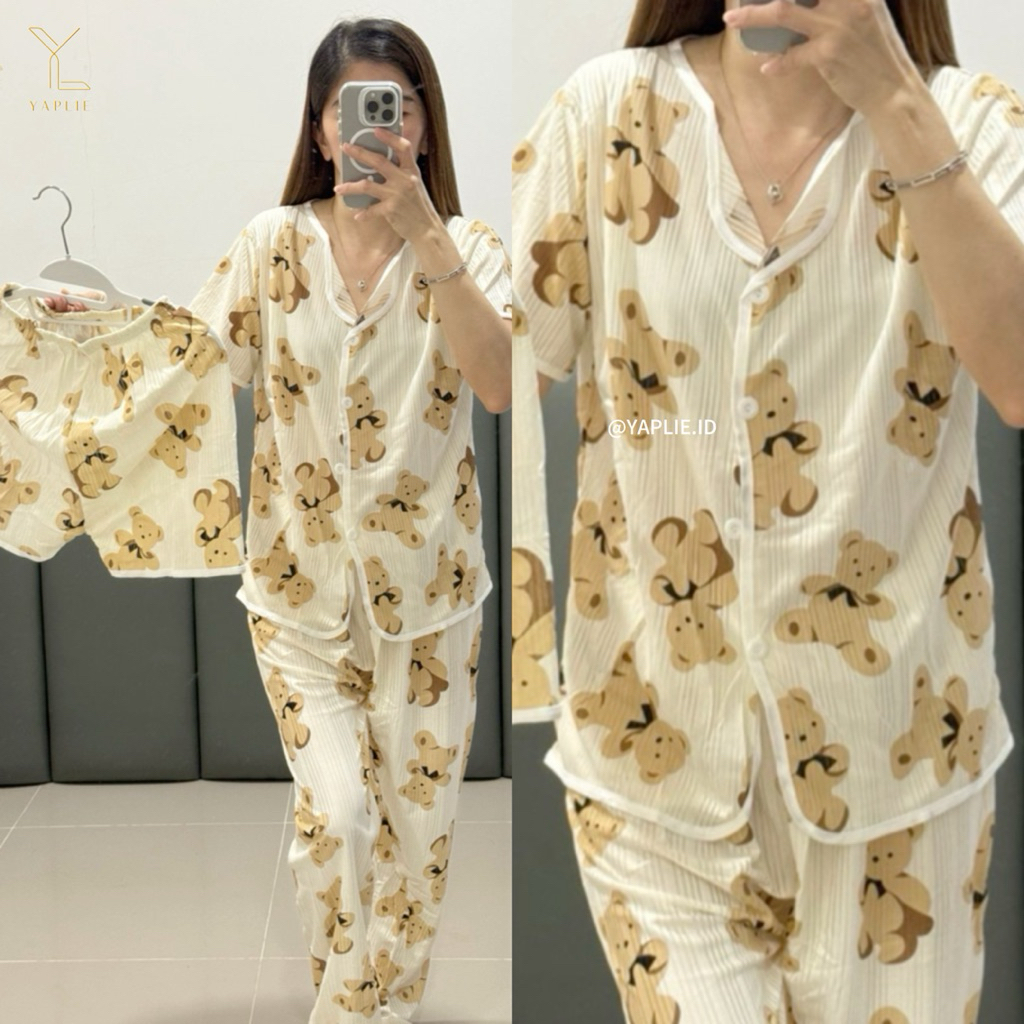 3KE01 YAPLIE BAJU TIDUR KOREA 3IN1 L BAHAN ADEM BAJU LENGAN PENDEK CELANA PANJANG FREE CELANA PENDEK