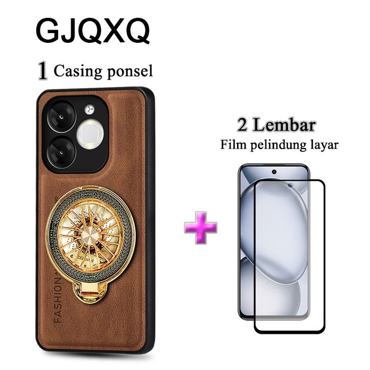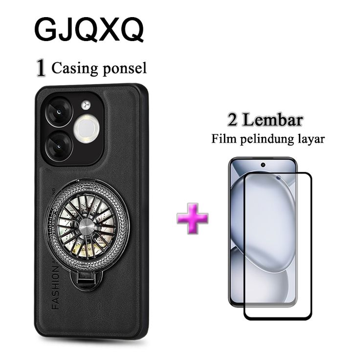 (TERLARIS)2 In 1 Casing For ITEL A80 Kulit Terkejut Kasus Telepon Dengan Stand Holder Film Keramik Layar Protektif