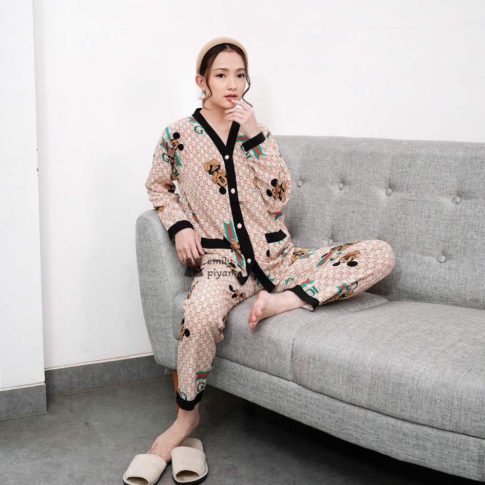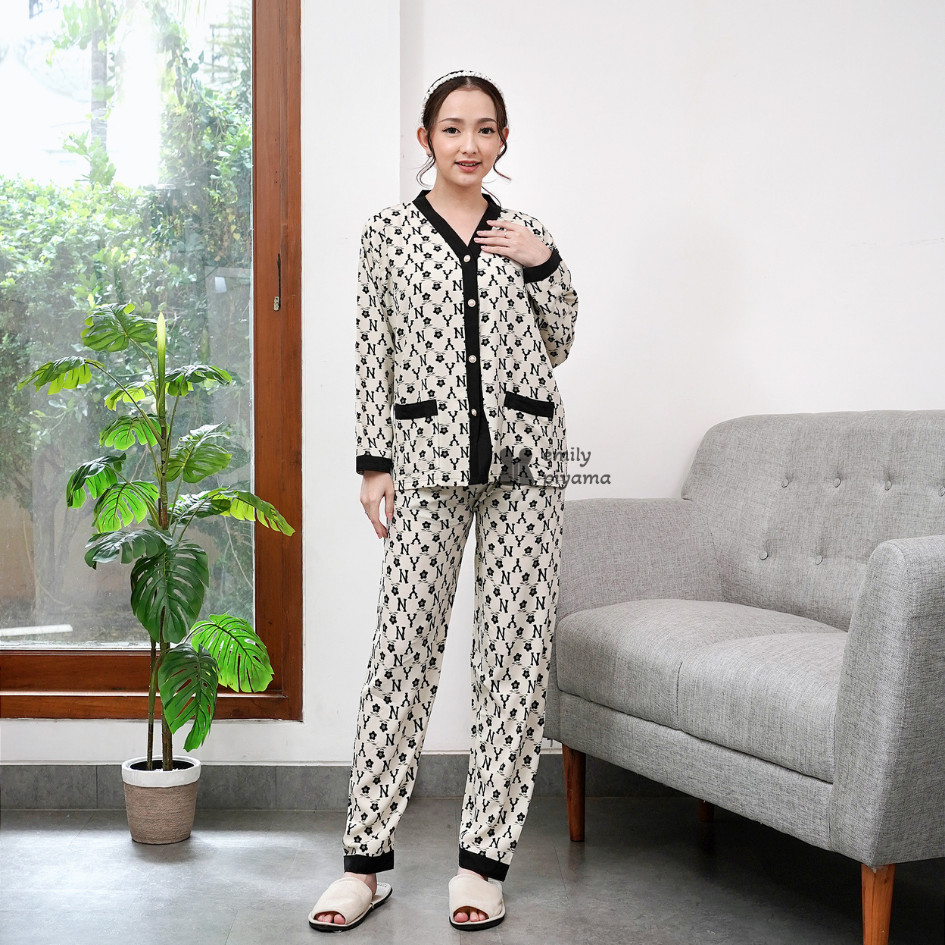 EMILY PIYAMA BAJU TIDUR SET PIYAMA MODEL KANCING DEPAN LENGAN PANJANG CELANA PANJANG PREMIUM PAKAIAN TIDUR WANITA DEWASA