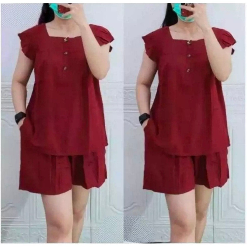 SETELAN BANGKOK POLOS CELANA PENDEK LD 110 ONE SET KANCING 3 BUSUI | SET PIYAMA BAJU TIDUR KEKINIAN