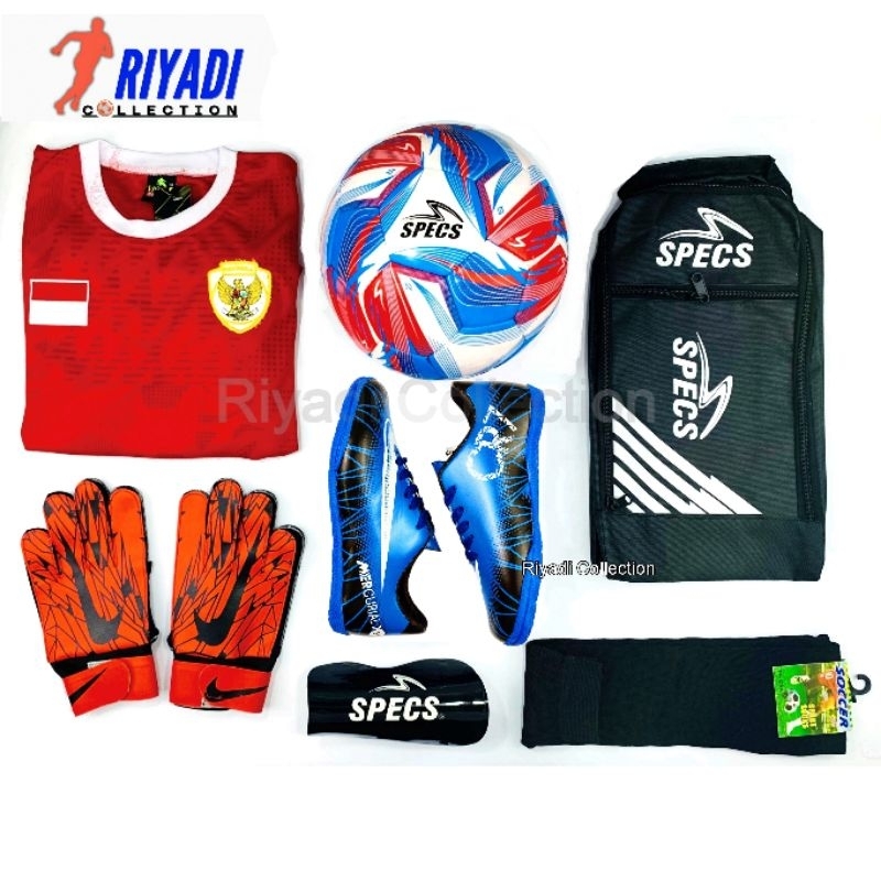 SEPATU FUTSAL ANAK PAKET KOMPLIT 7 (KAOS KAKI, DEKER, TAS, JERSEY, BOLA, SARUNG KIPER) SD-SMP