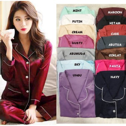 BJ-PIYAMA PP SATIN VELVET - SATIN POLOS WANITA DEWASA MURAH - LENGAN PANJANG