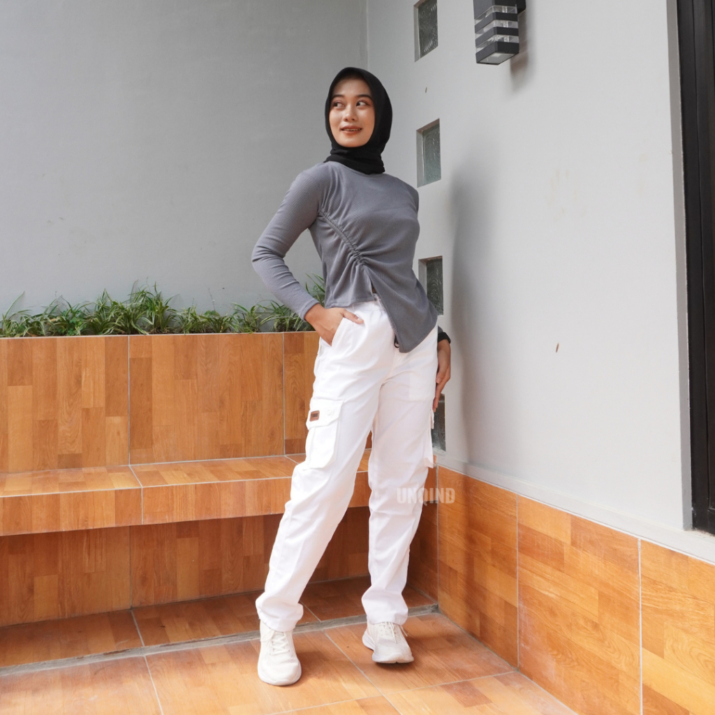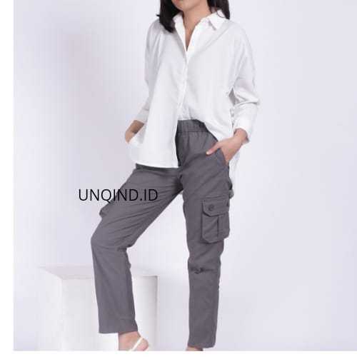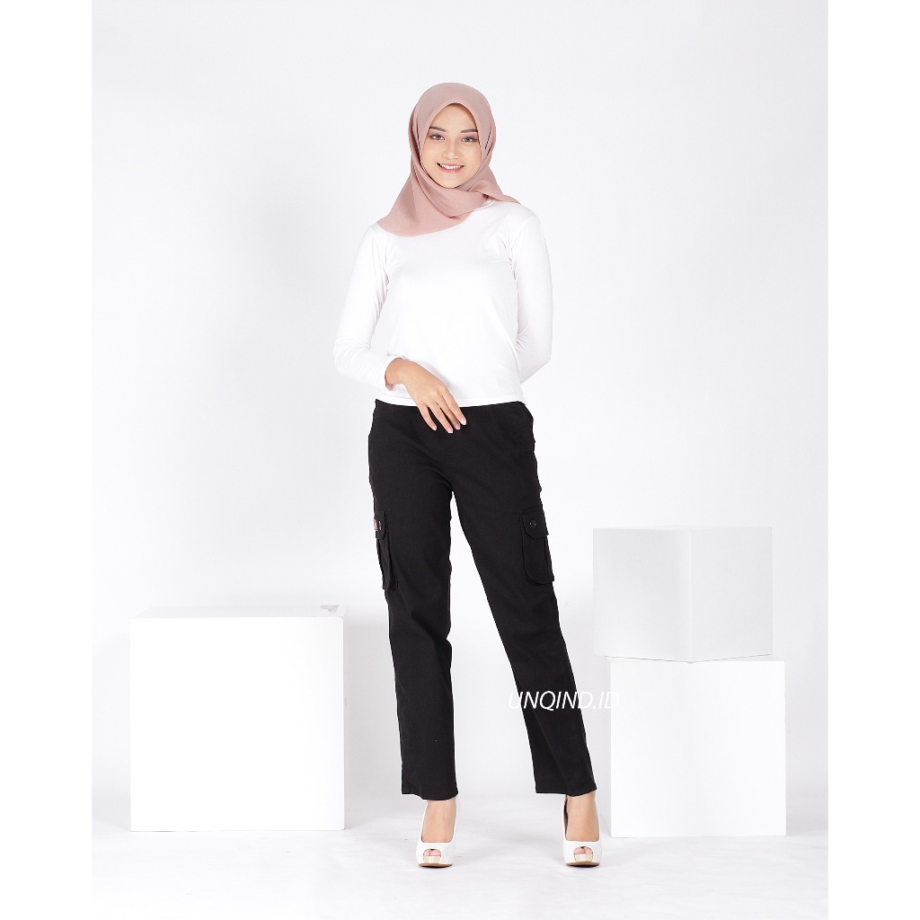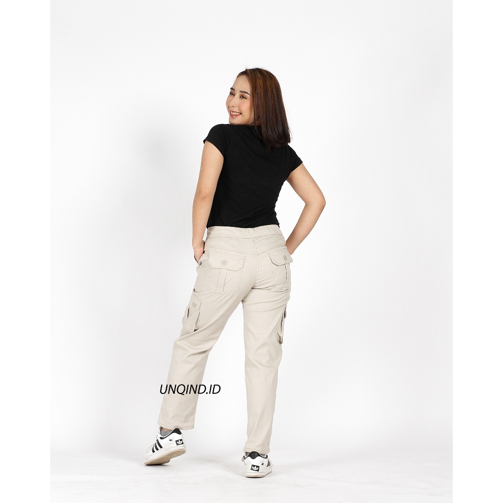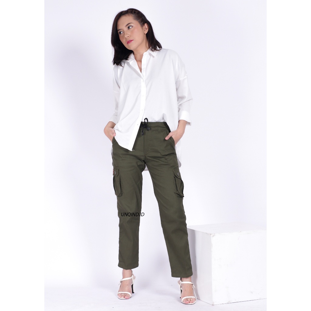 Cargo Pants Wanita Pinggang Karet Bahan Katun Strecth Nyaman - Casual