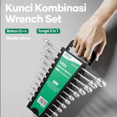 ISKU kunci ring pas set 11 pcs Chrome Vanadium Combination Wrench 8 9 10 11 12 13 14 17 19 22 24 mm CRV Cermin