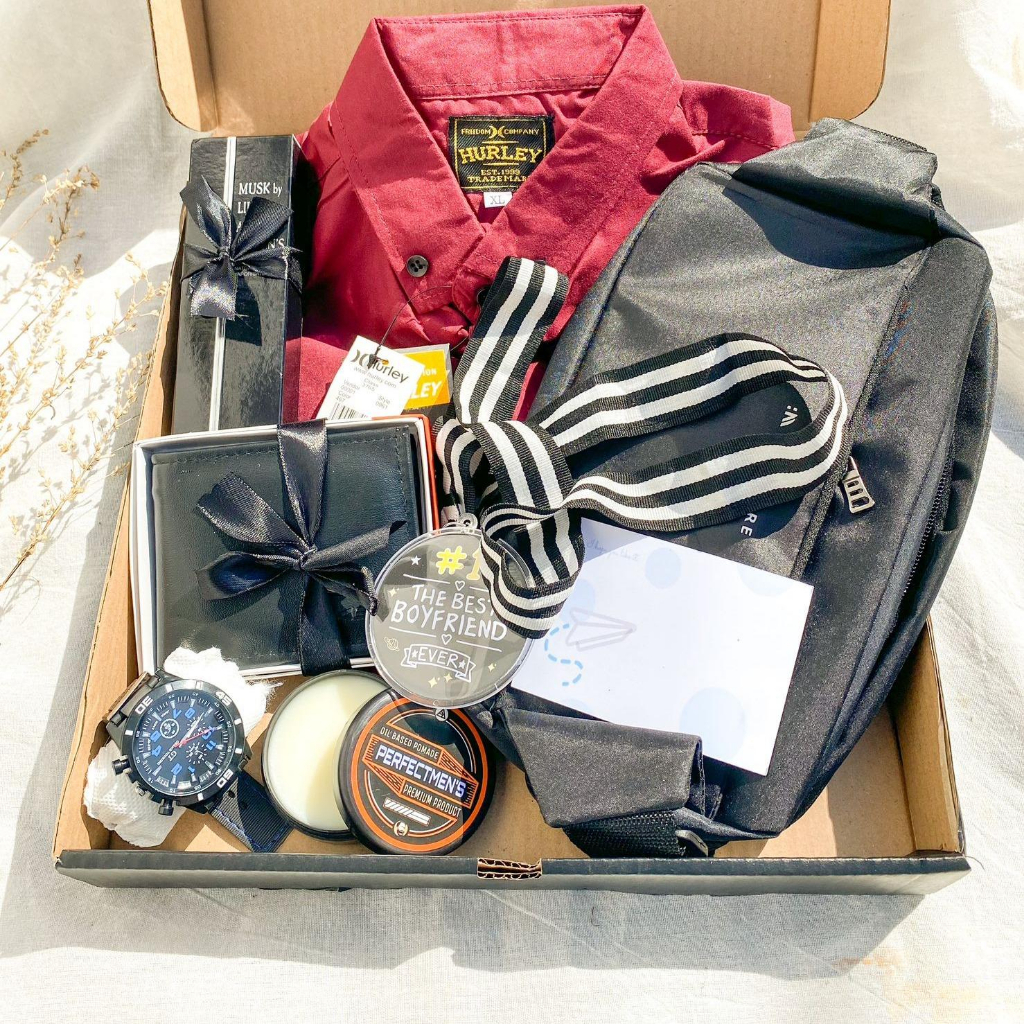HAMPERS KADO COWOK KEMEJA LENGAN PENDEK POLOS GIFTBOX UNTUK LAKI LAKI (JAM TANGAN SESUAI STOK)