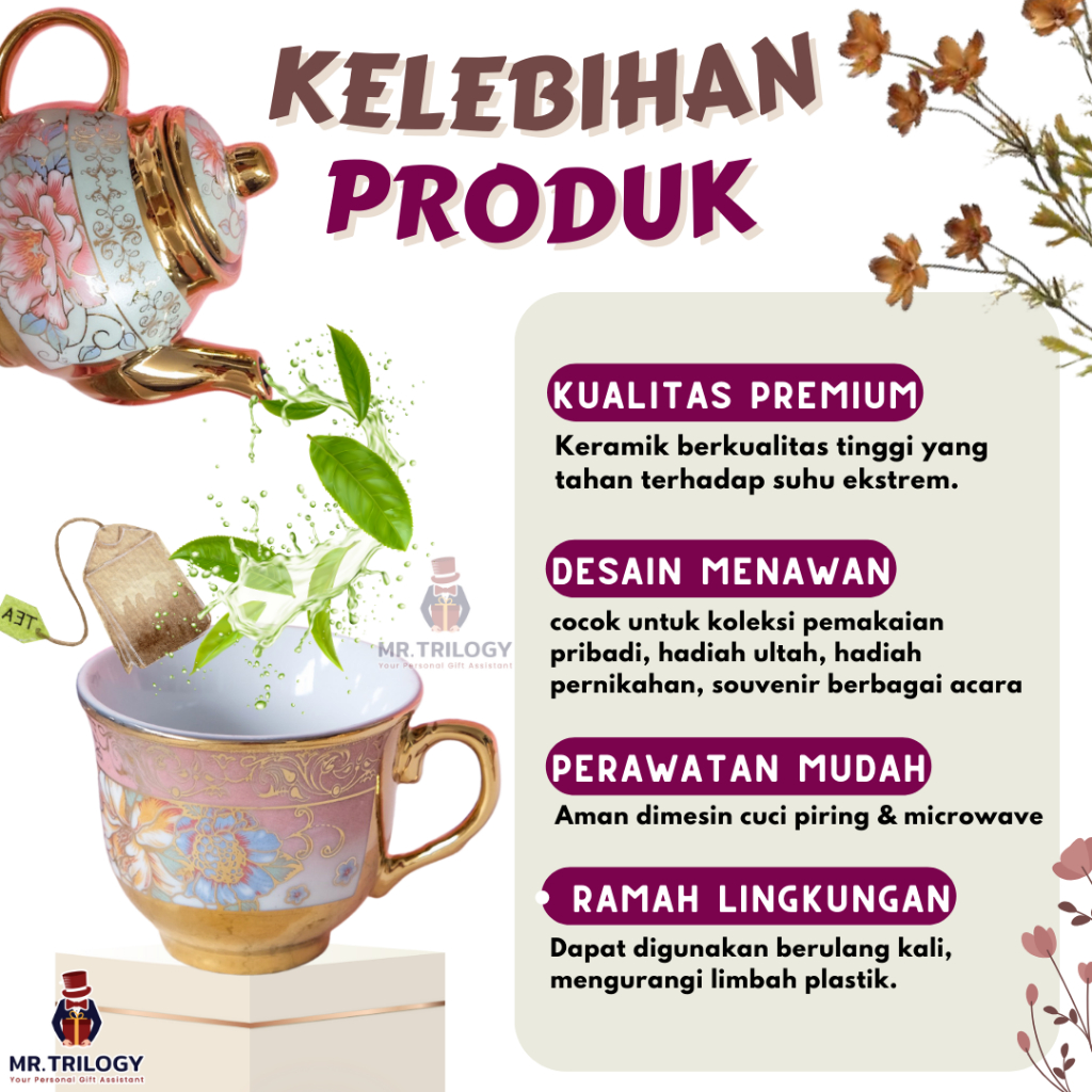 CANGKIR TEKO POT SET KERAMIK 7IN1 HAMPERS SOUVENIR MEWAH GELAS TEH