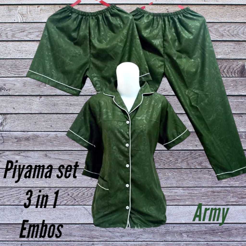 BAJU TIDUR WANITA DEWASA SETELAN PIYAMA EMBOS 3 IN 1 UKURAN M , L, XL, XXL