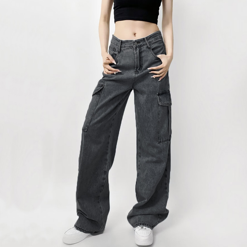 Celana Jeans Cargo Wanita celana cargo wanita highwaist celana denim panjang jumbo jeans cargo fashion korean style jean