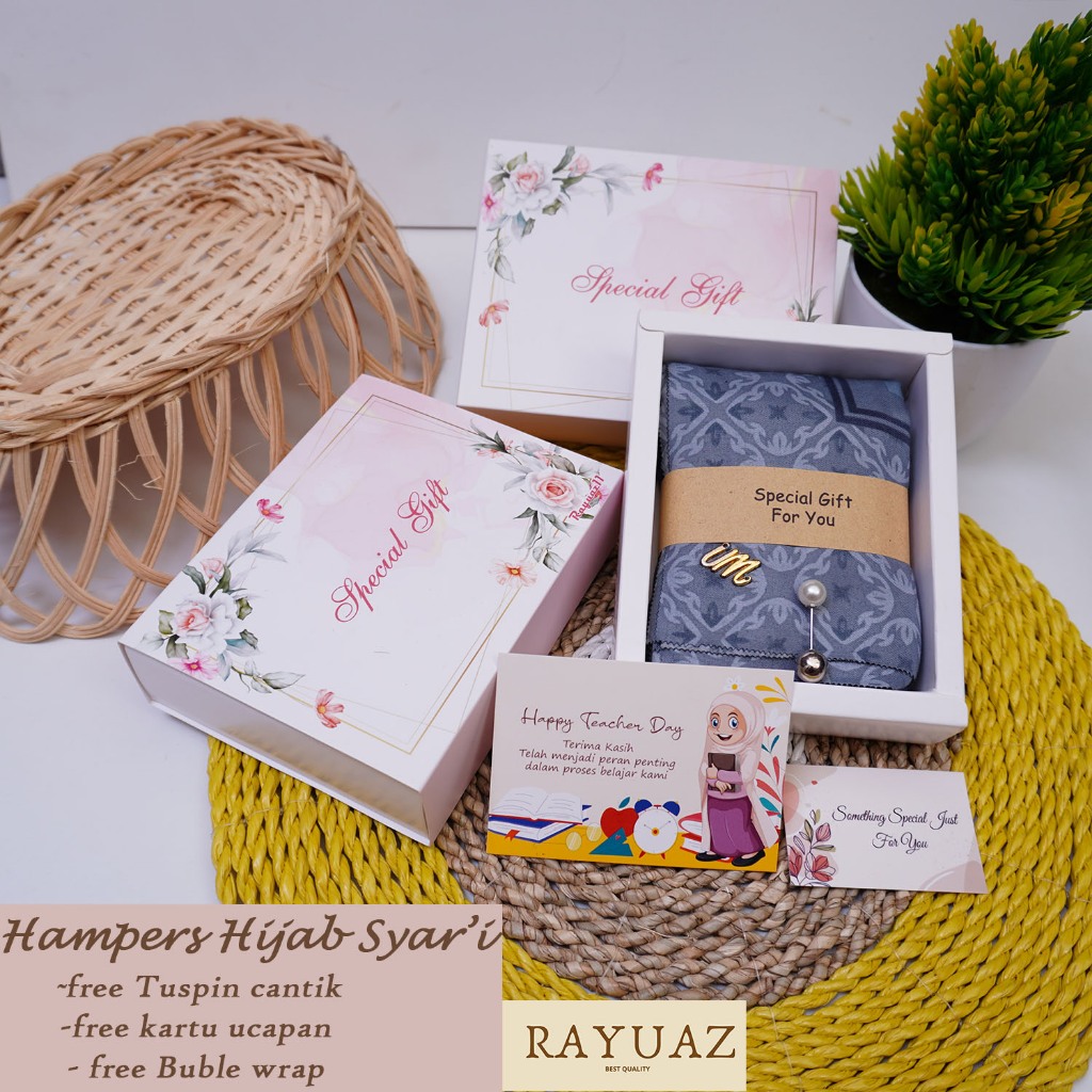 HAMPERS HIJAB SYARI AZARA MOTIF GIFT BOX KADO ULANG TAHUN CEWEK HARI GURU