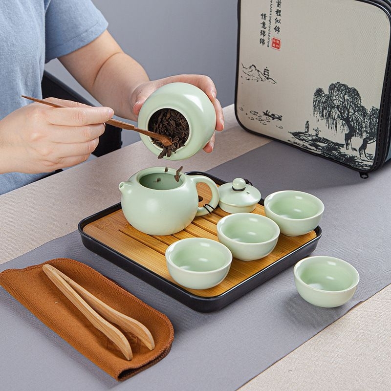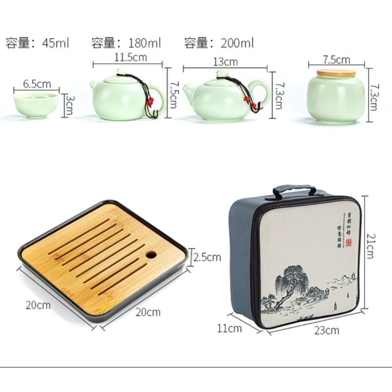 CHINESE TEA POT 1 SET TEKO TEH SET FREE 4 CANGKIR TAS TRAY HAMPERS TRAVEL