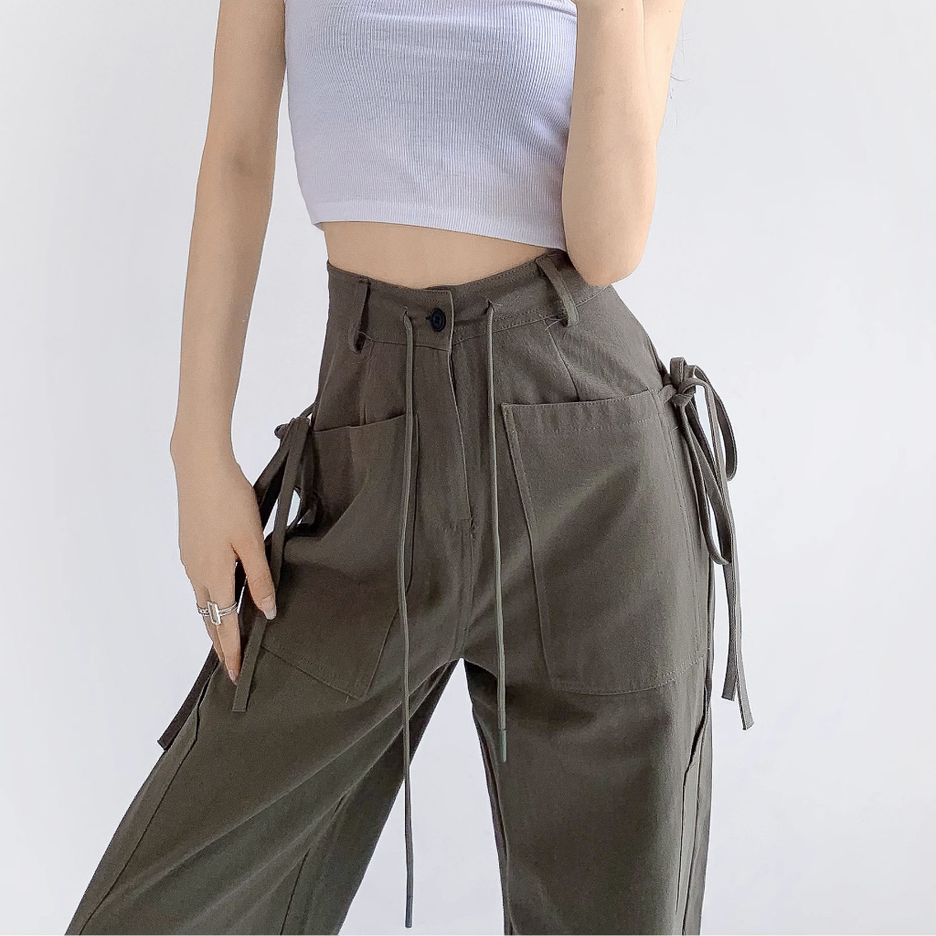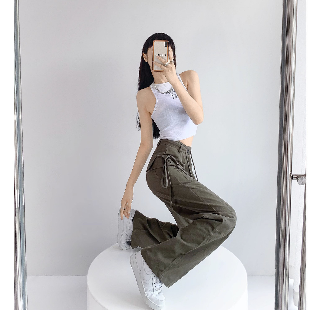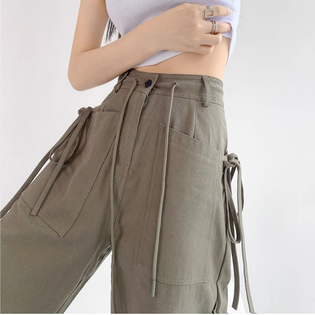 Celana Cargo Jeans Wanita Straight Highwaist Korea Style