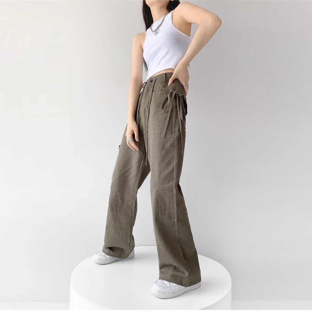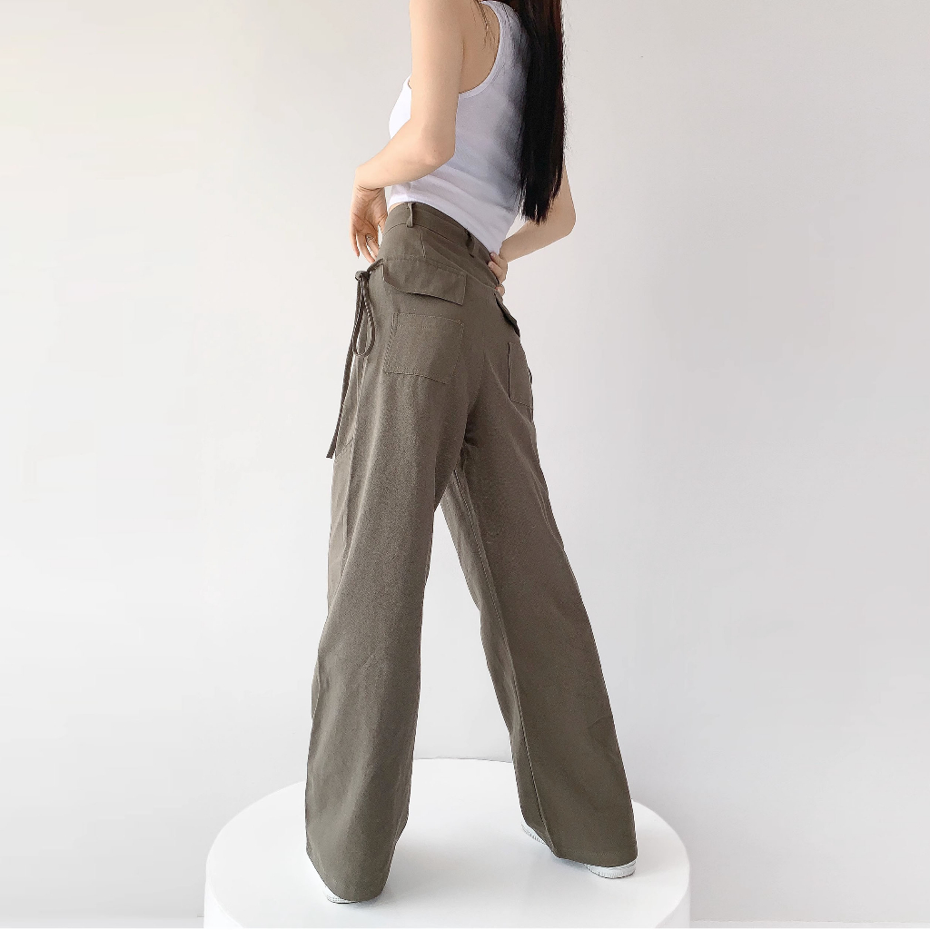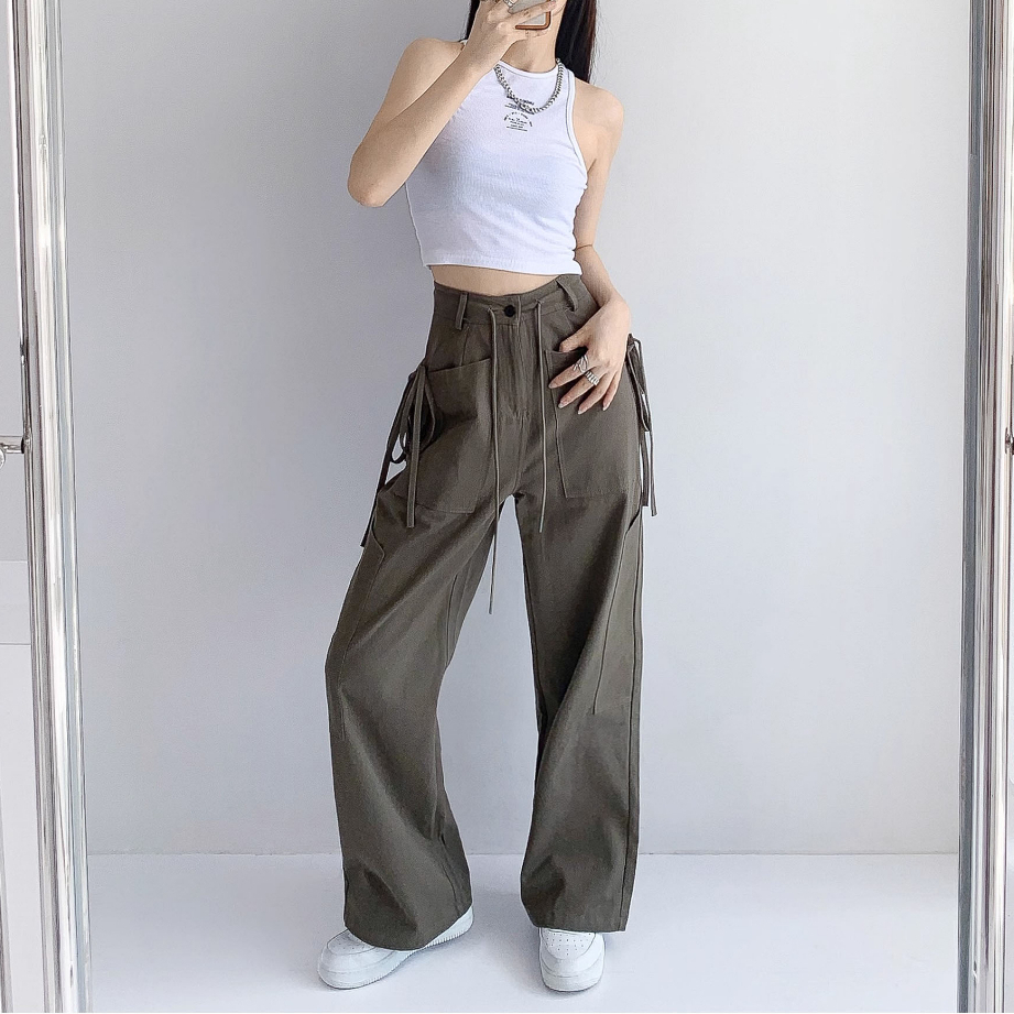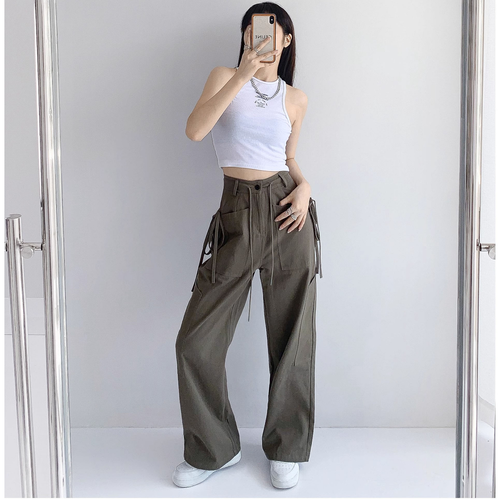 Celana Cargo Jeans Wanita Straight Highwaist Korea Style
