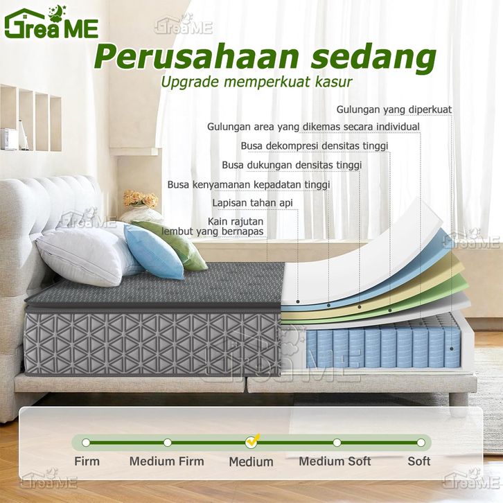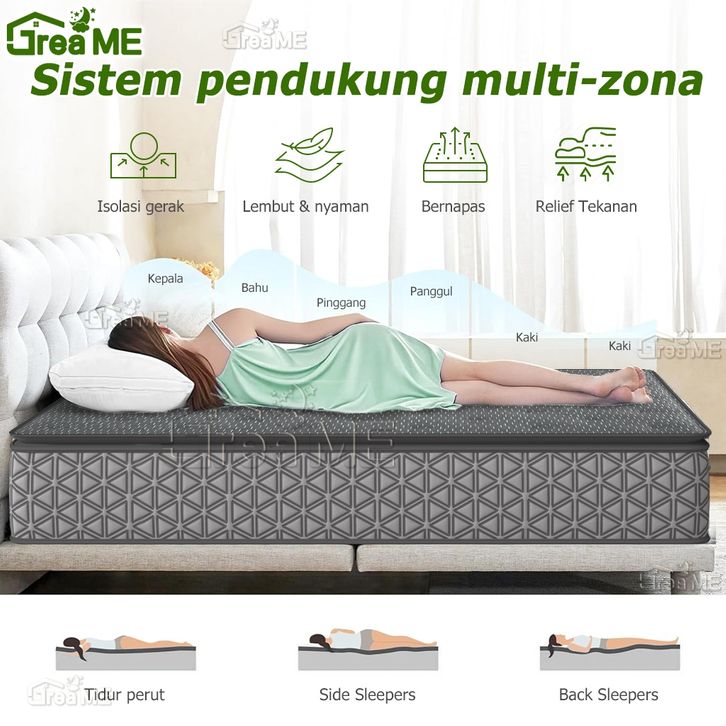 【.】Kasur Spring Bed Tebal 26/30Cm Spons Busa Empuk Lantai Matras Anti Lembab Kasur Free Bantal