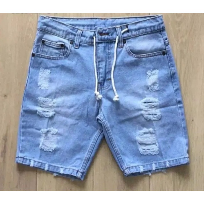 CELANA JEANS PENDEK PRIA ORIGINAL WARNA PUTIH BAHAN JEANS PREMIUM SOBEK UKURAN 28 29 30 31 32 33