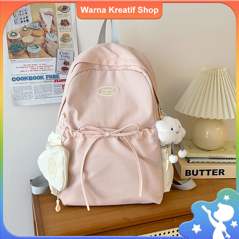 [Mall] Tas Punggung Sekolah Gaya Korea Warna Solid Ringan & Berkapasitas Besar Cocok untuk SMP SMA & Perjalanan