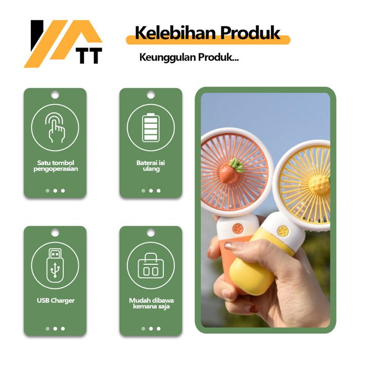 YATT Kipas Angin Mini USB Rechargeable / Kipas Angin Tangan Stand Portable Dengan Varian Buah Bunga