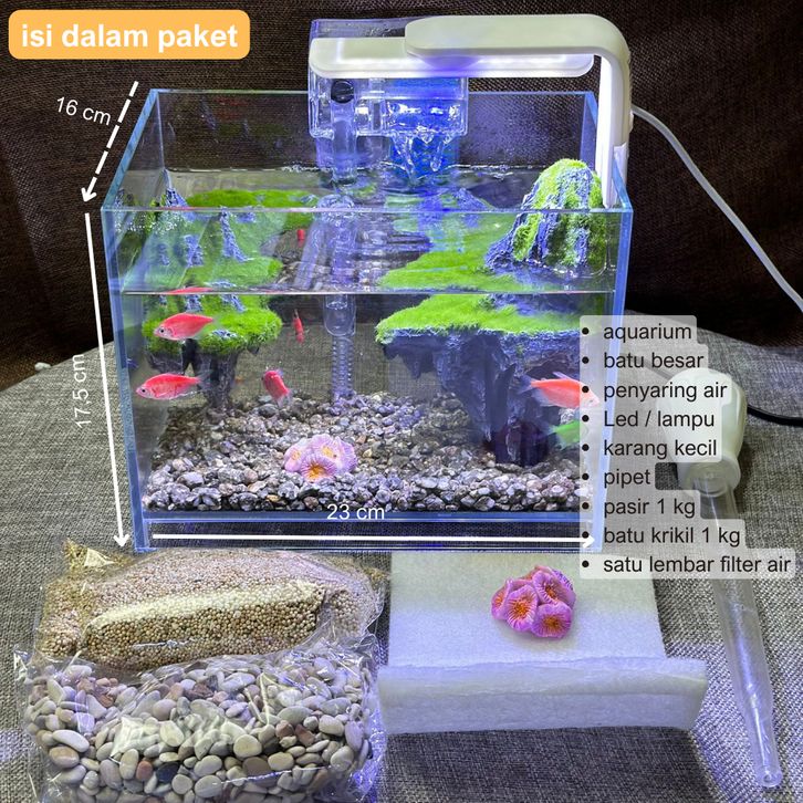 Akuarium Ikan Mini 230 Tangki Ikan Mini Dengan Filter Dan Lampu Led