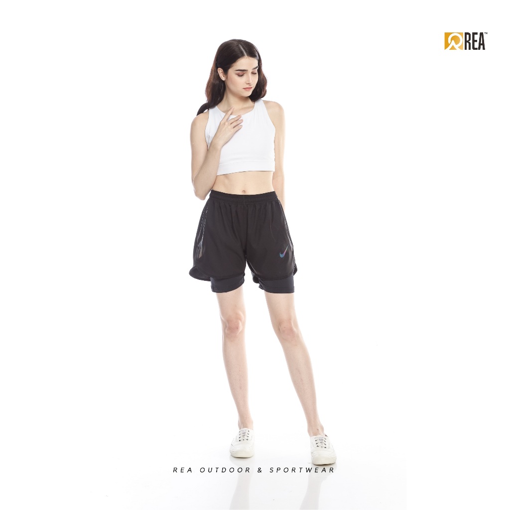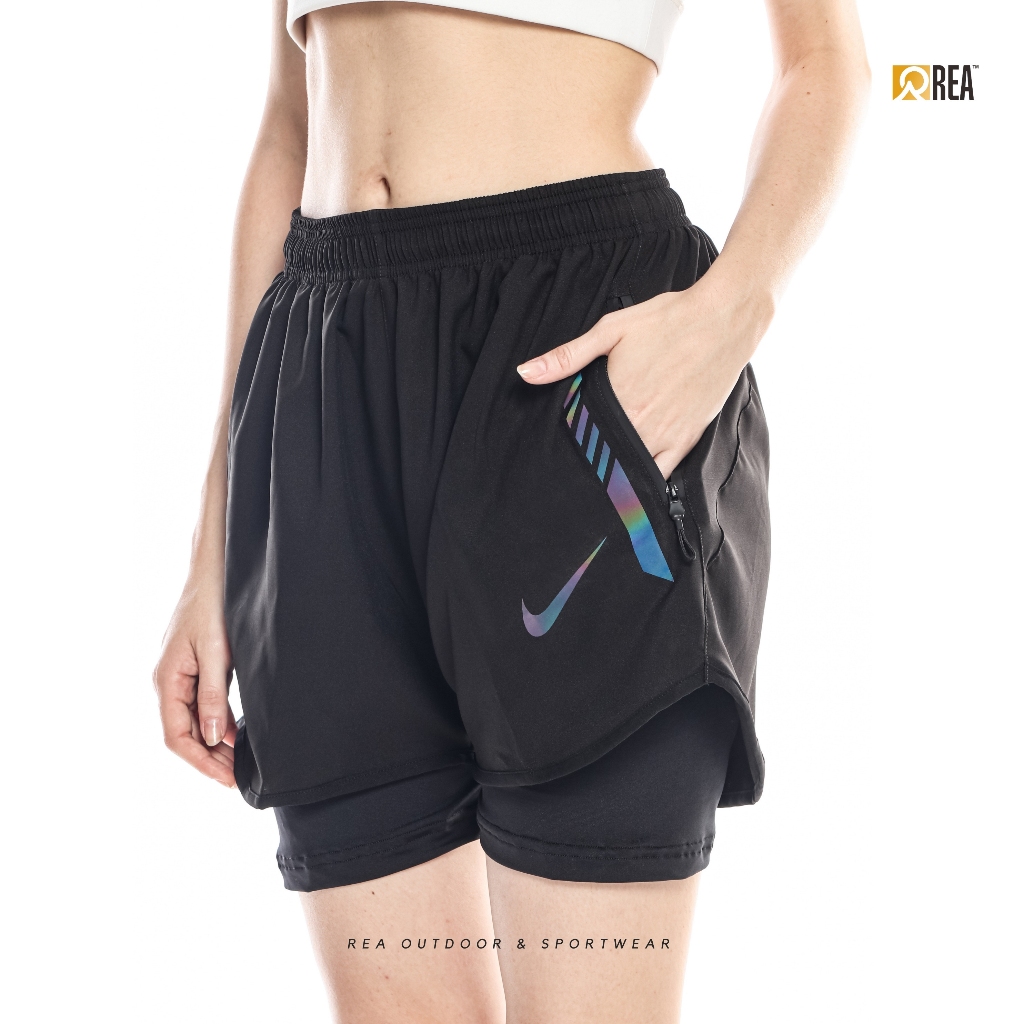 CELANA PENDEK 2IN1 LEGGING RUNNING REFLECTIVE RAINBOW FITNES GYM UNISEX