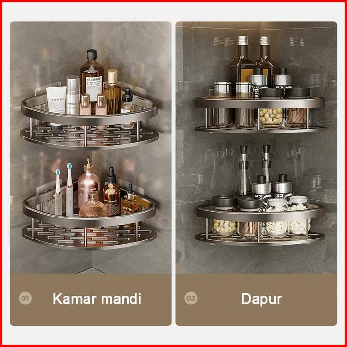 Coupal Rak Sudut Serbaguna Space Aluminum Rack Multifunction Rak Kamar Mandi Sudut Berbahan Space Serbaguna Gantung Temp