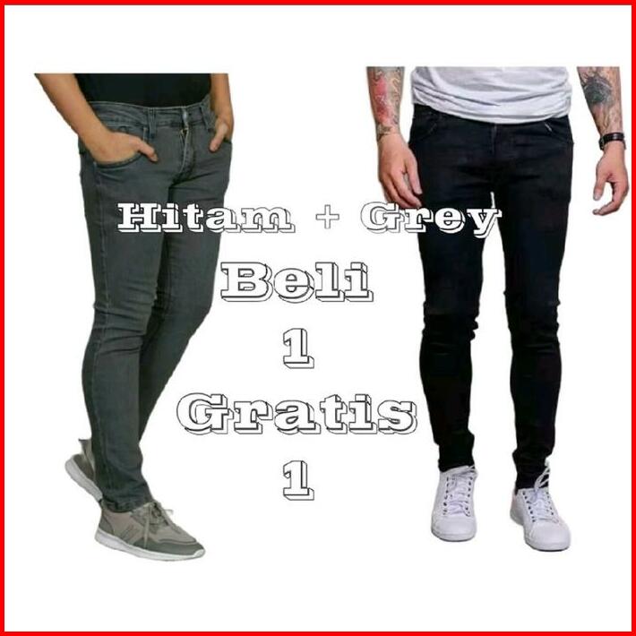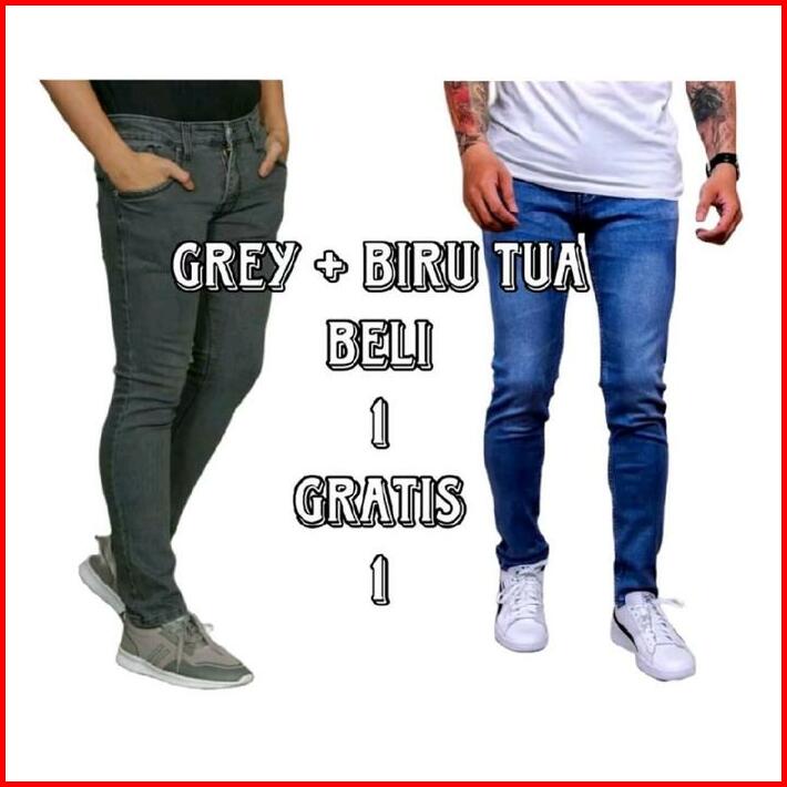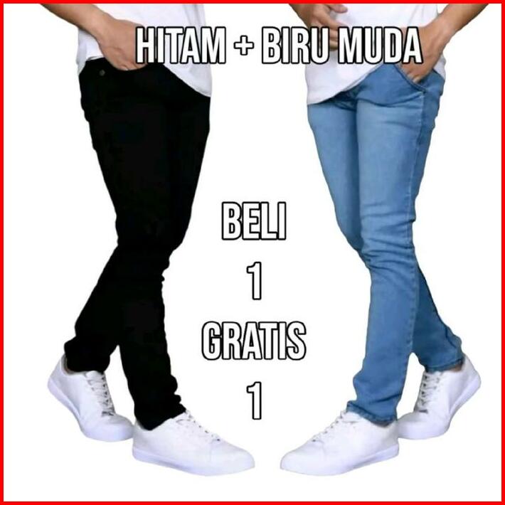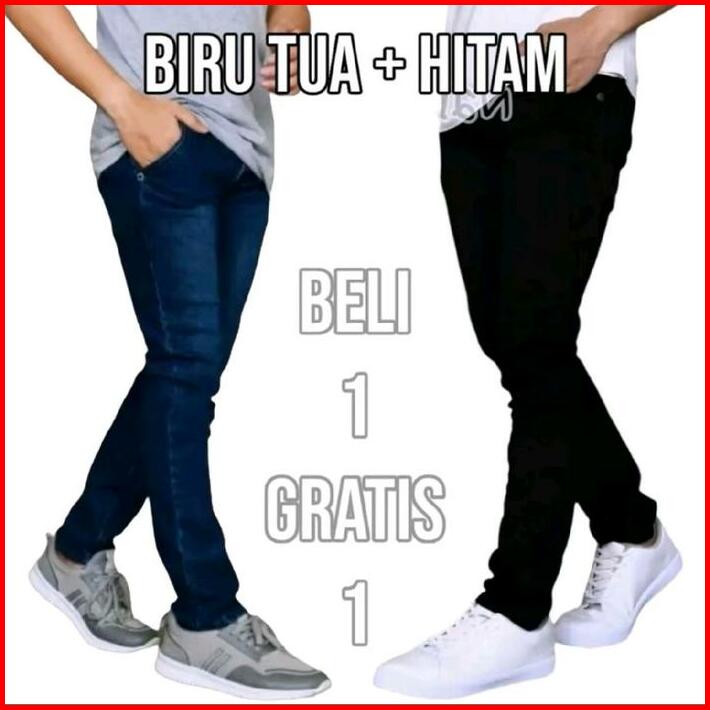 Paket Hemat Beli 1 Gratis 1 2 Pcs Celana Jeans Pria Slimfit Panjang Pensil Celana Kerja Harian Hitam Biru Muda Biru Tua