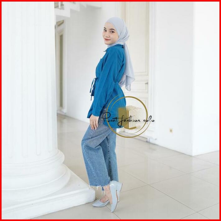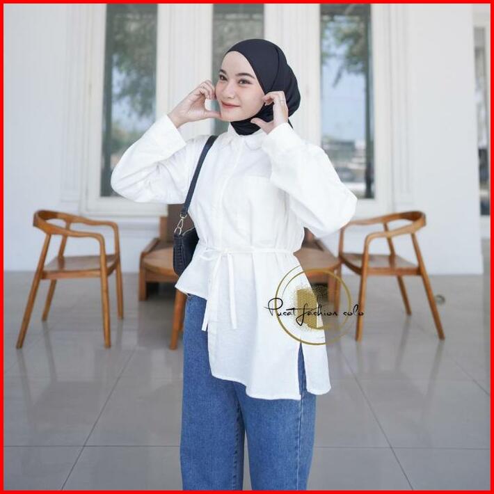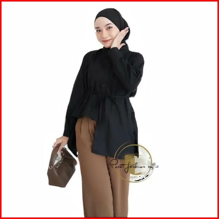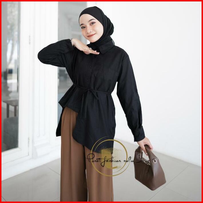 Donna Blouse Atasan Wanita Terbaru Linen Blus Polos Busui Lengan Panjang Santai Hitam Putih Katun Baju Cewek Dewasa Casu