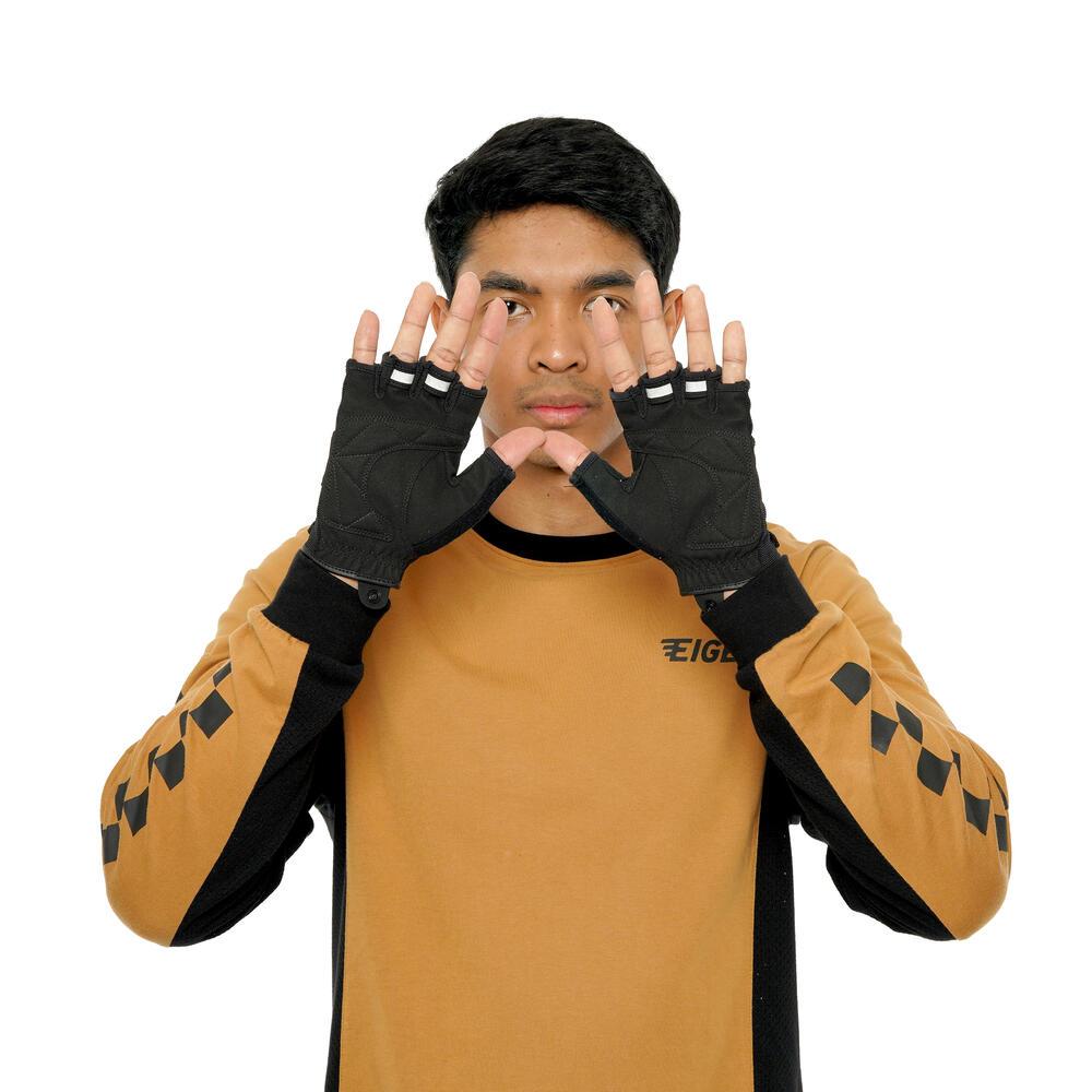 Sarung Tangan Motor Pria Eiger Angreb 2.0 Gloves Original Bahan Nilon Warna Hitam Setengah Jari