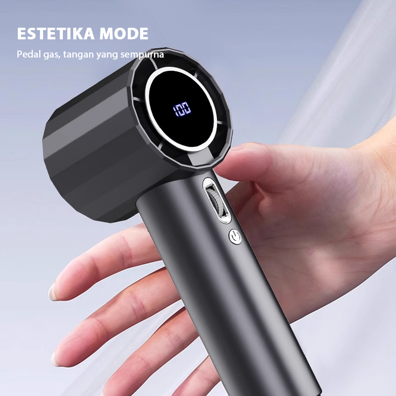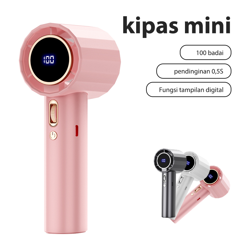 Mini Kipas Angin Turbo Portable Handheld Fan High Speed 10000RPM Rechargeable Digital Display Adjustable Kipas
