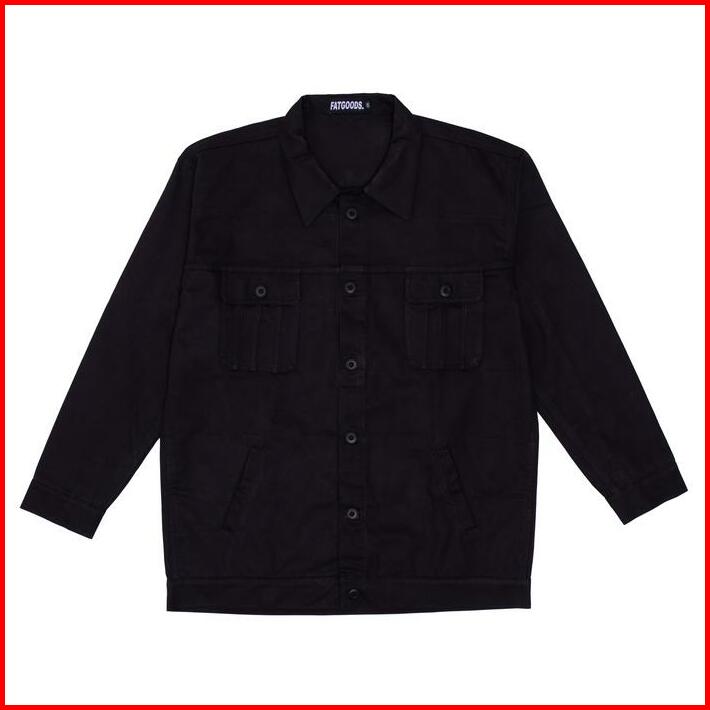 Jaket Trucker Canvas Pria Fatgoods Hitam Oversize Jaket Jumbo Pria