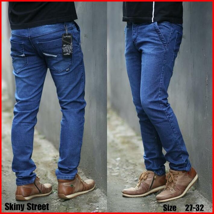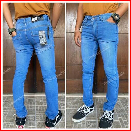 Celana Panjang Jeans Pria Dewasa Keren Gaul Distro Bahan Ngaret Model Pensil Slim Fit