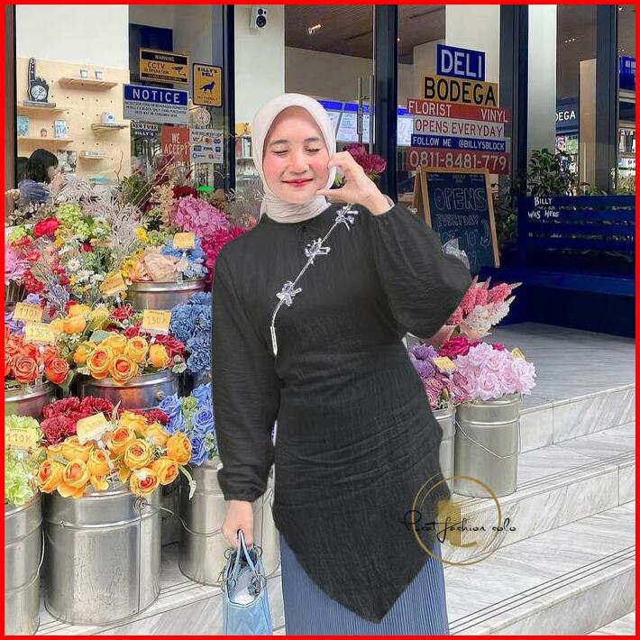 Naya Atasan Tunik Wanita Model Asymetris Pololinen Premium Allsize Fit To Xl Putih Hitam