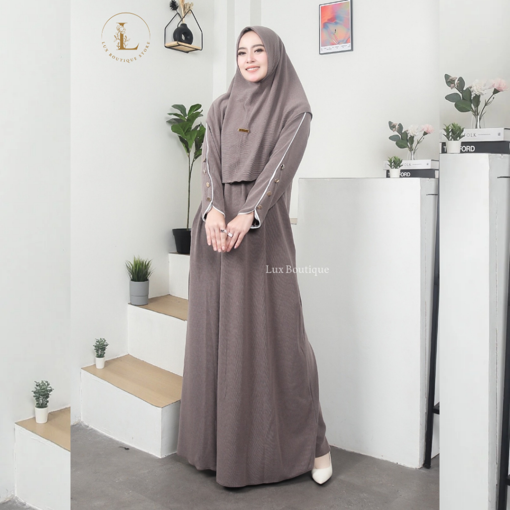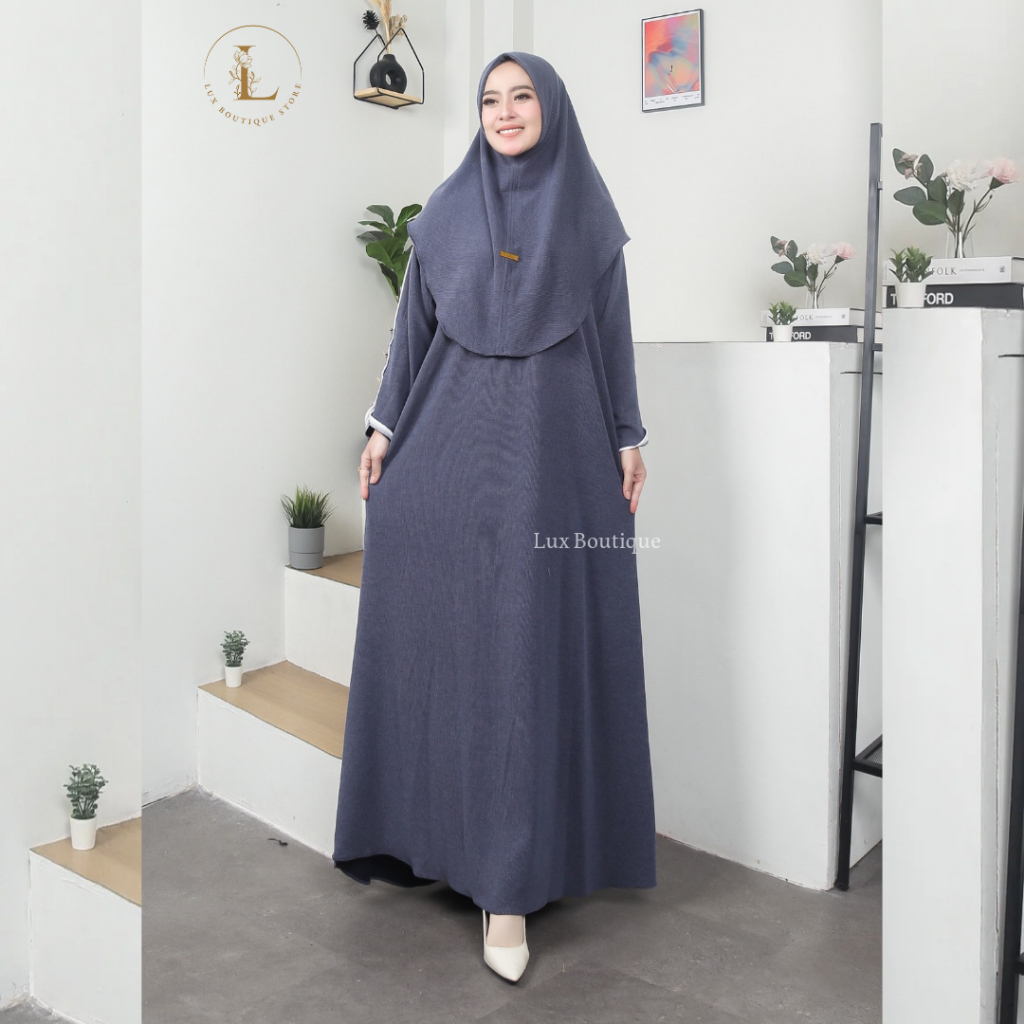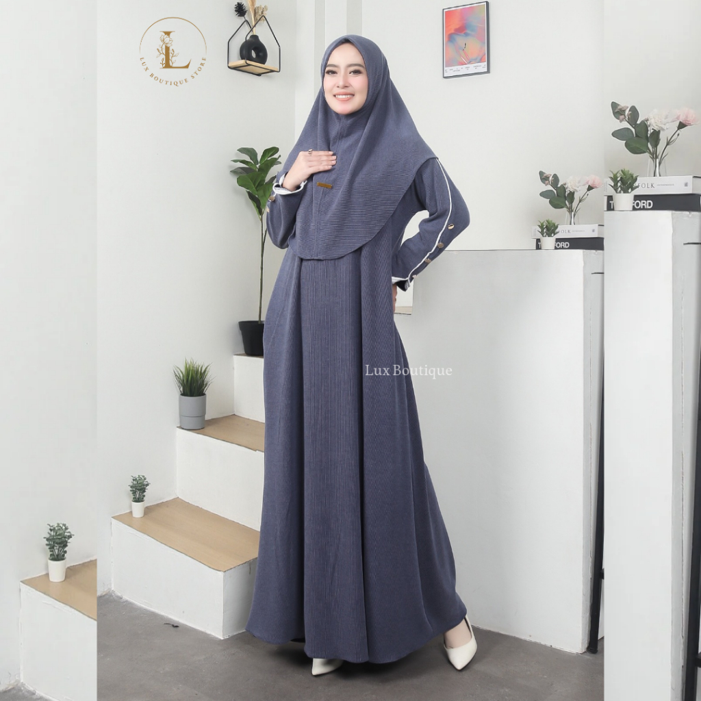 MEDINA DRESS GAMIS MUSLIM WANITA SET KERUDUNG HIJAB BAHAN KNITT TERBARU