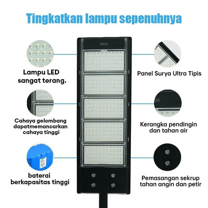 Garansi 10 tahunLampu Jalan Tenaga Surya Matahari otomatis outdoor 0 Biaya listrik sepanjang tahun Level tahan air