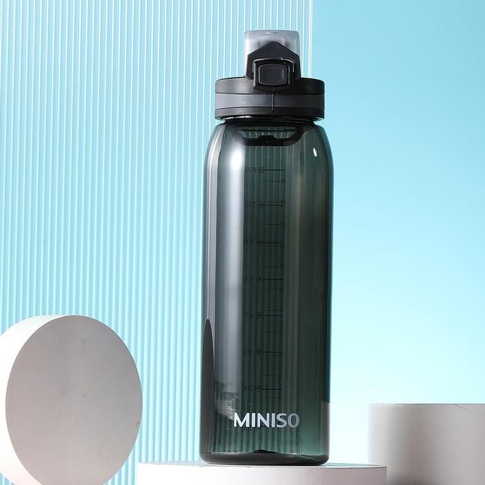 Botol Minum CLEARANCE SALE MINISO Botol Air Minum Plastik 900M1 Besar Olahraga Bottle Anti Bocor - Hitam